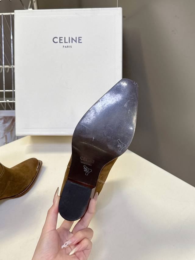 / Celine专柜最新时装靴、走秀款时尚博主同款 早秋力推单品!复古欧美风格 炸街必备单品 凯旋门Logo点缀 非常高端有气质 四季可穿的短靴、鞋面:采用原版定制