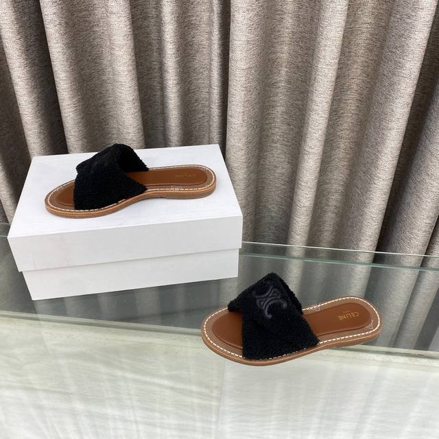 Celine塞琳 25Ss 春夏新款拖鞋 凯旋门英伦风平底微标拖鞋 Ddd 简约大气时髦 耐看不过时 是时尚圈永不退潮的经典所在,复古的英伦风格,让你穿出不一样的气质 Ddd 面料:原版进口羊毛 Ddd 内里:牛皮内里 Ddd 大底:原版生胶大底 Ddd 码数:35-42 40 41 42订做 DDD