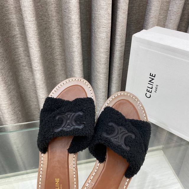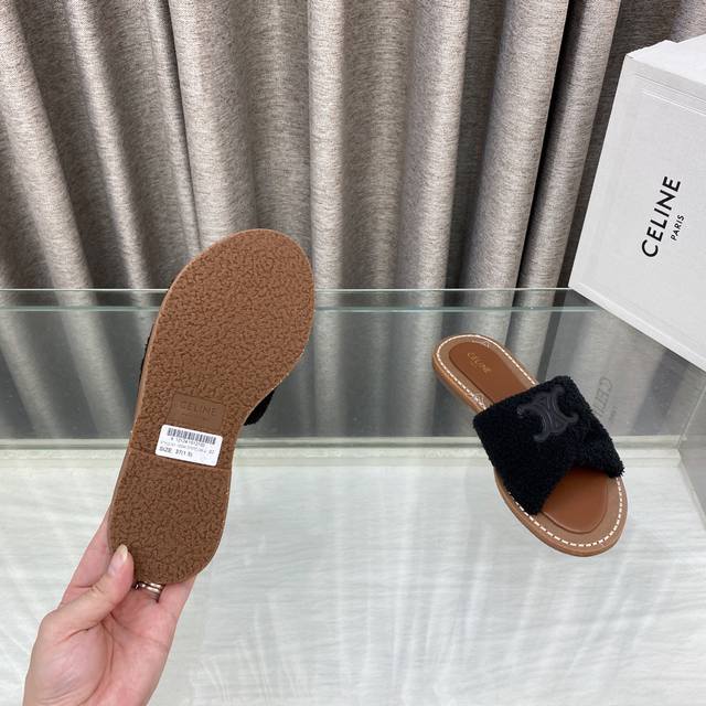 Celine塞琳 25Ss 春夏新款拖鞋 凯旋门英伦风平底微标拖鞋 简约大气时髦 耐看不过时 是时尚圈永不退潮的经典所在,复古的英伦风格,让你穿出不一样的气质