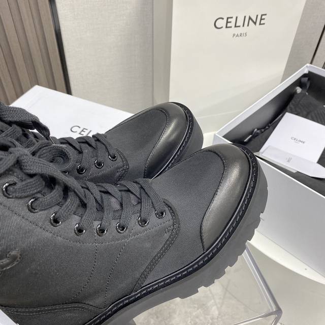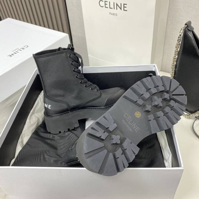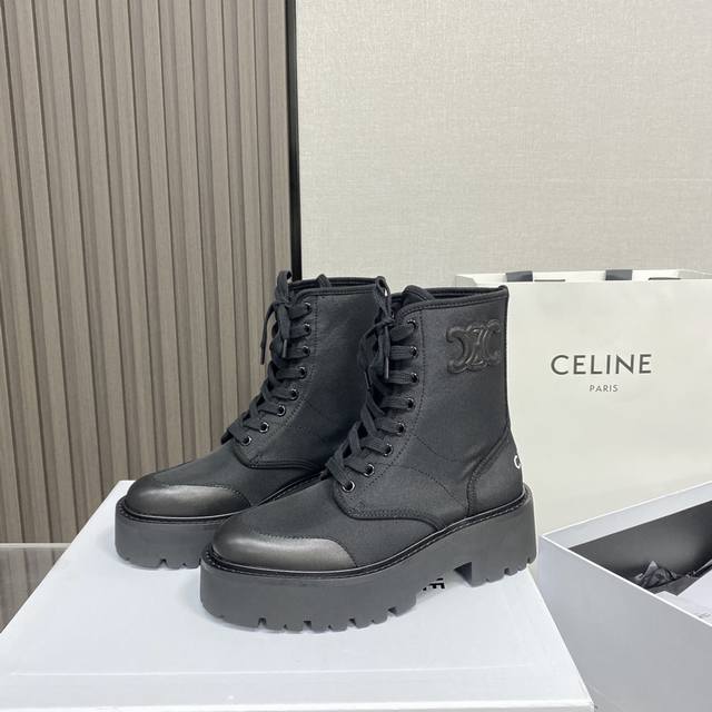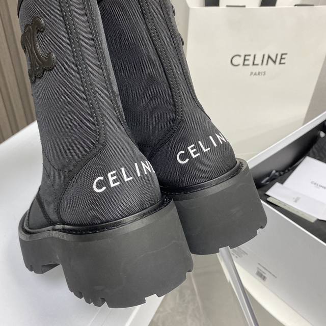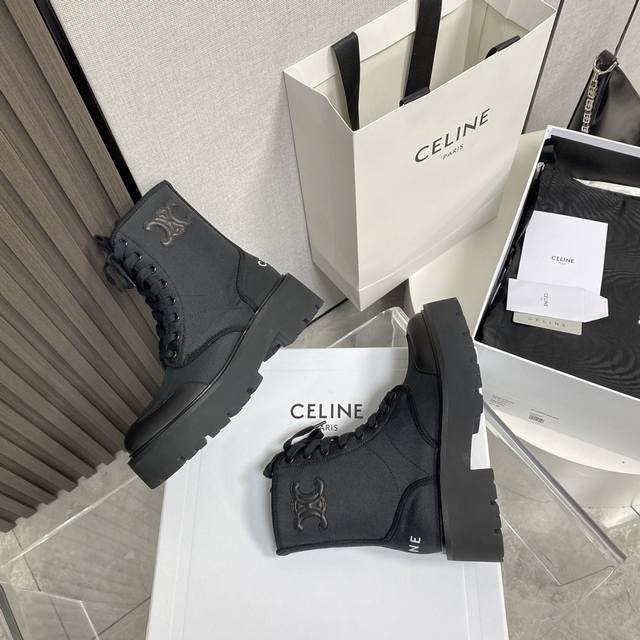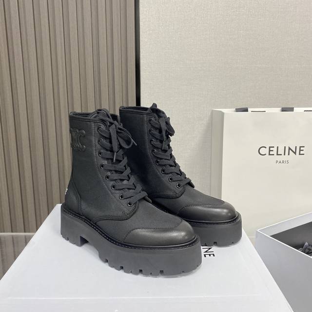 Celine布面马丁靴上新P 春夏首发春夏新款马丁靴 好物推荐厚底增高马丁靴 百搭靴子 ,大底原版开模 舒适度超极好 鞋面:原版定制尼龙面料 小牛皮面料 内里: