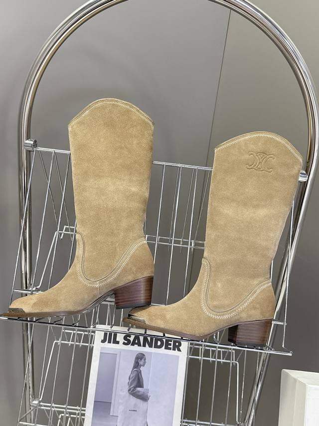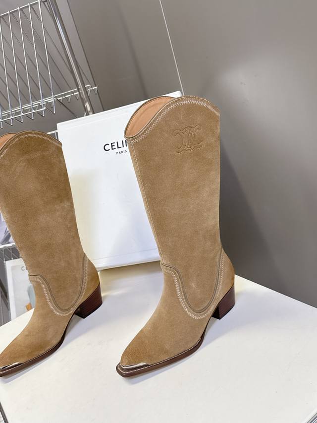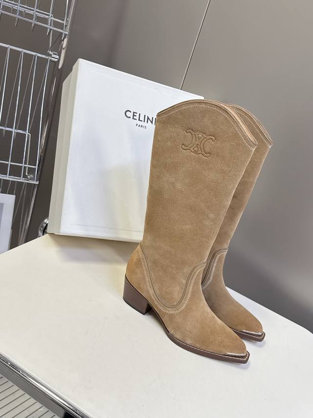 Celine思琳专柜秋冬最新时装靴、走秀款时尚博主同款 早秋力推单品!复古欧美风格 炸街必备单品 凯旋门Logo点缀 非常高端有气质 四季可穿的短靴、鞋面:采用