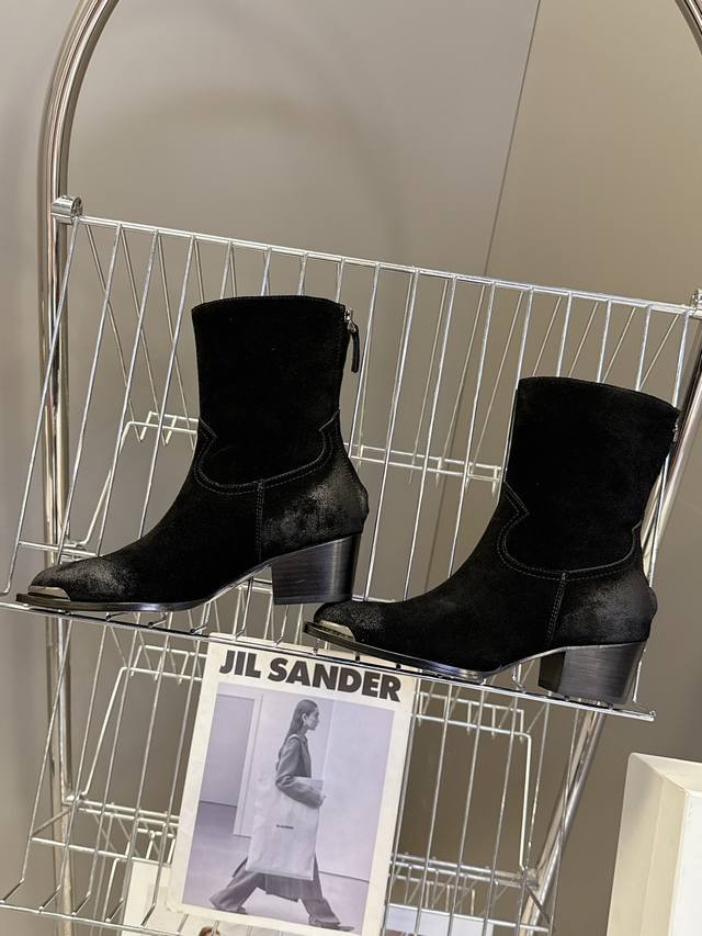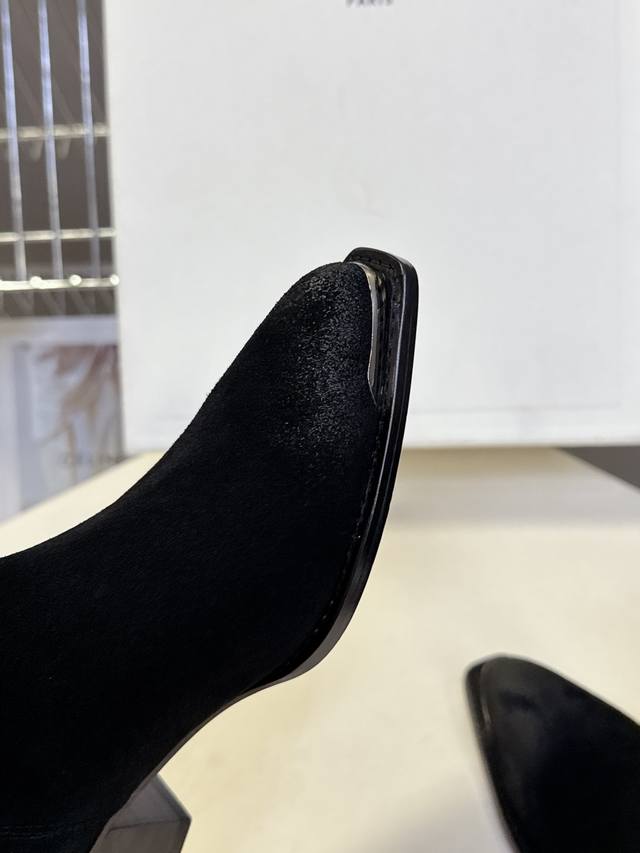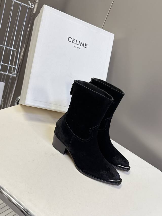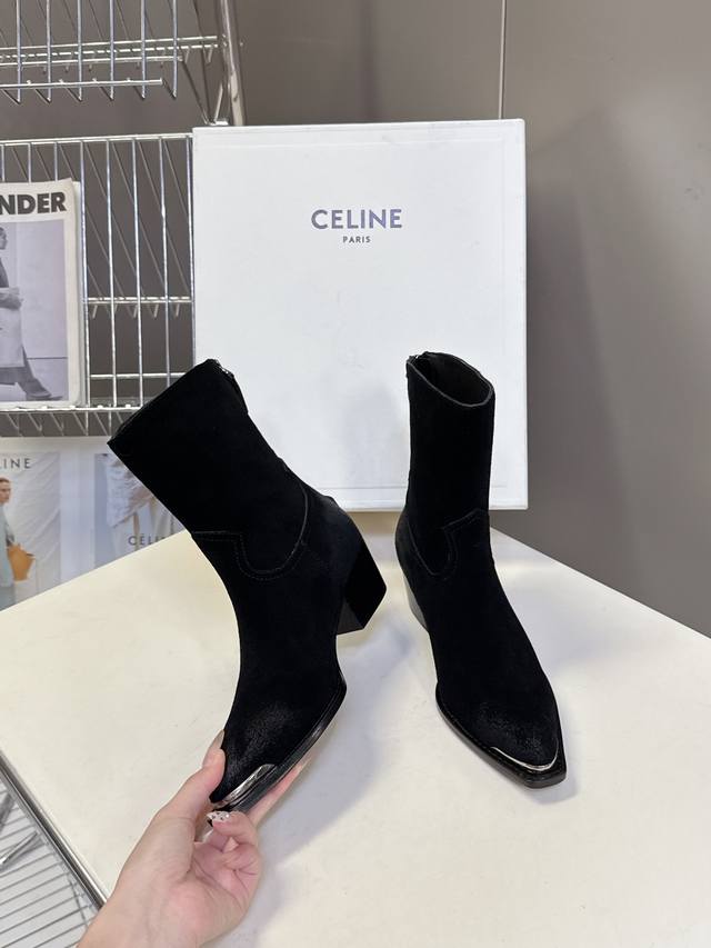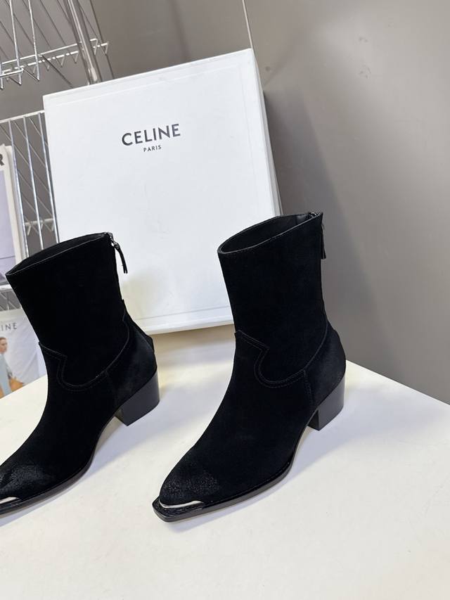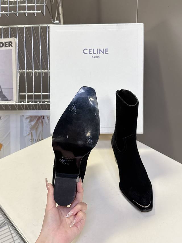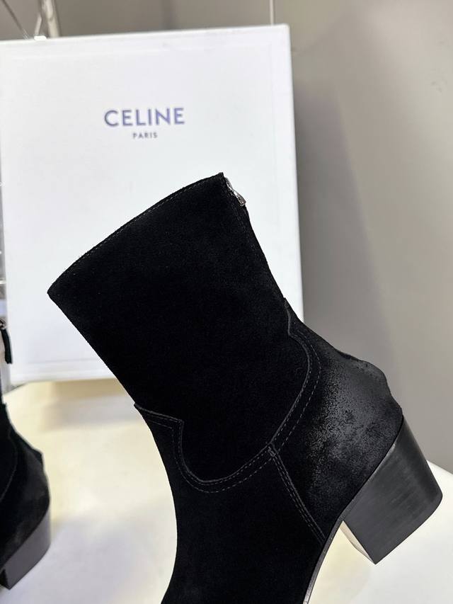 Celine思琳专柜秋冬最新时装靴、走秀款时尚博主同款 早秋力推单品!复古欧美风格 炸街必备单品 凯旋门Logo点缀 非常高端有气质 四季可穿的短靴、鞋面:采用