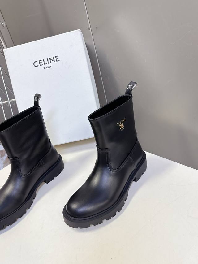 Celine思琳秋冬专柜最新款一脚蹬短靴 超多明星网红种草 时尚博主同款 早秋力推单品!复古欧美风格 炸街必备单品 品牌Logo点缀 非常高端有气质 四季可穿的短靴 长靴 专业靴子师傅调楦 脚感超级舒服 鞋面:采用原版定制小牛皮、内里垫脚丝绸牛皮里 原版开模防滑大底 Size:35-40 DDD