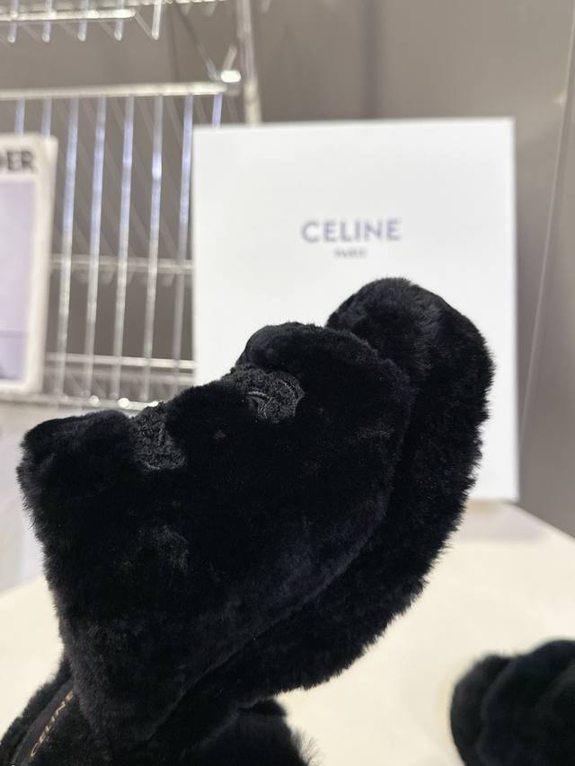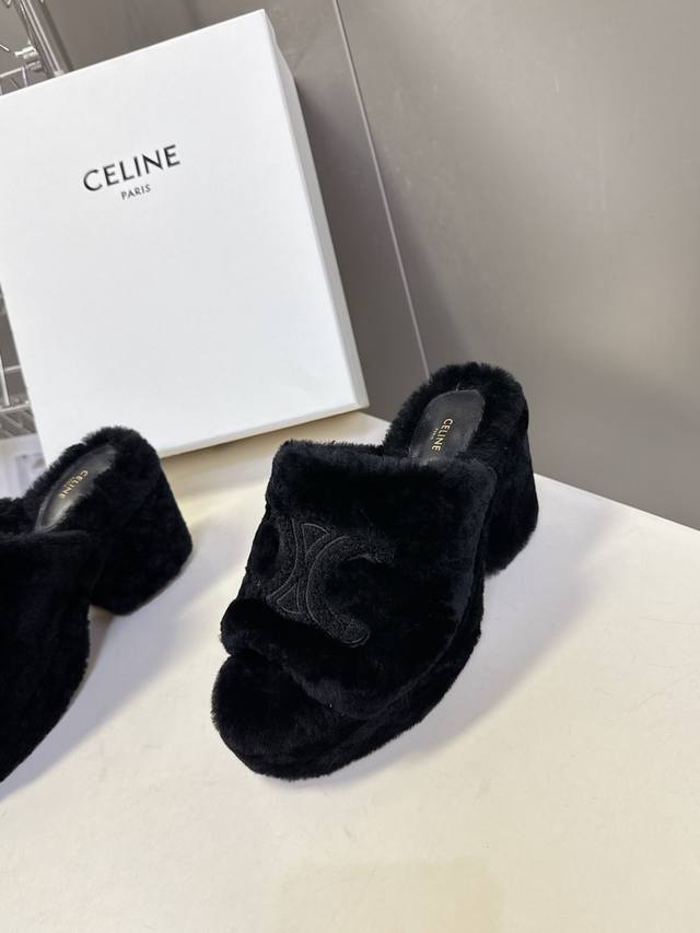 FFF Celine思琳秋冬最新款凯旋门防水台高跟毛拖 DDD 它以独特设计 将品牌经典与时尚前沿巧妙融合 标志性的大凯旋门 以精湛工艺缝制于鞋面醒目而张扬 诉说着C家的深厚底蕴与潮流态度2Cm防水台与8Cm高跟的完美组合 更是气场的强大来源 防水台的厚实设计 巧妙分散压力 让行走更轻松 即使长时间穿着也毫无负担 高跟则赋予步伐优雅韵律 举手投足间尽显女性魅力 材质采用定制澳洲进口羊毛 原版开模定制防滑大底Size:35-41 40 41定制 DDD