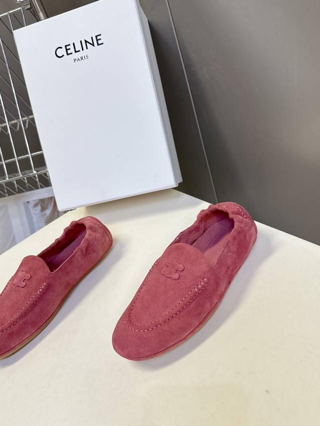 Celine思琳秋冬最新款凯旋门 豆豆鞋 薄底鞋 超多明星网红种草 非常火的薄底慵懒风设计元素 简简单单的牛皮拼接加上品牌Logo点缀 非常有辨识度 上脚超级百