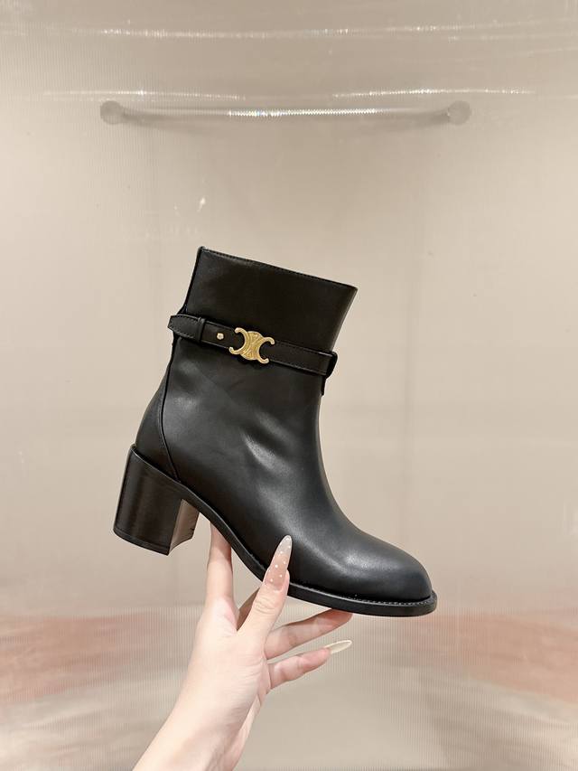 Celine思琳秋冬最新款复古凯旋门粗跟 短靴 DDD 超多明星时尚博主种草 思琳这一季好看的款式真的是很多 比如这长靴就很美拉德风 当下最流行的面料跟鞋型 简约的凯旋门Logo设计 完全不挑腿型 上脚秒变大长腿,超级显瘦又百搭!简直绝绝子了 DDD 鞋面:进口头层小牛皮 DDD 内里:进口混种羊皮里 DDD 跟高:6Cm DDD 大底:意大利真皮大底 DDD Size:35-40 40 定制不退换 DDD