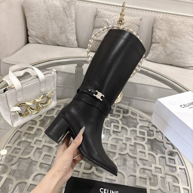Celine思琳2025Ss秋冬专柜最新款骑士靴 超多明星网红种草 时尚博主同款 早秋力推单品! 复古欧美风格 炸街必备单品 凯旋门品牌Logo点缀 非常高端有
