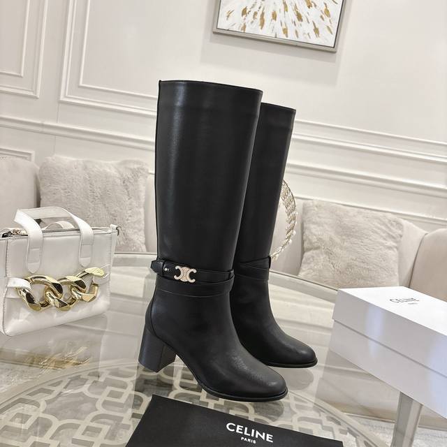 Celine思琳2025Ss秋冬专柜最新款骑士靴 超多明星网红种草 时尚博主同款 早秋力推单品! 复古欧美风格 炸街必备单品 凯旋门品牌Logo点缀 非常高端有气质长靴 专业靴子师傅调楦 脚感超级舒服 鞋面:采用原版定制小牛皮 内里:进口牛皮里 跟高:6Cm 大底:意大利进口真皮大底 码数: 35-40 41、42定做不退换 出厂价Pp: