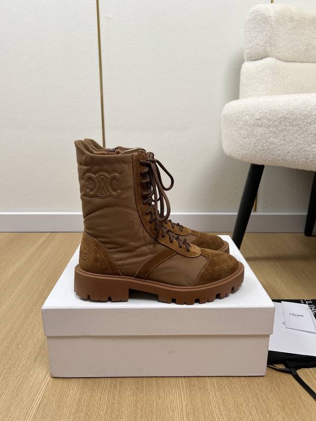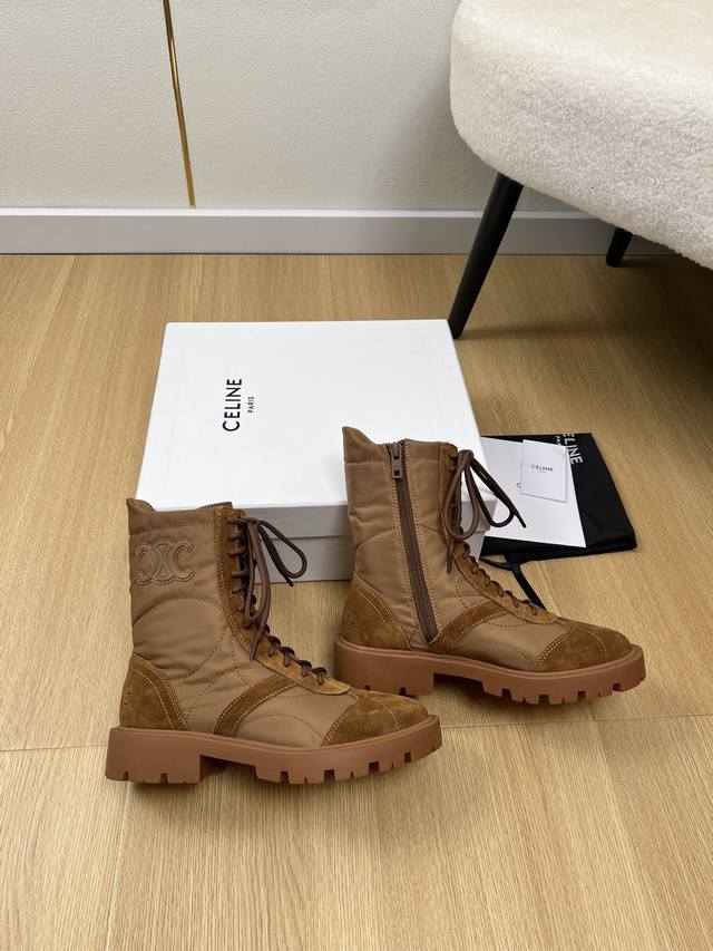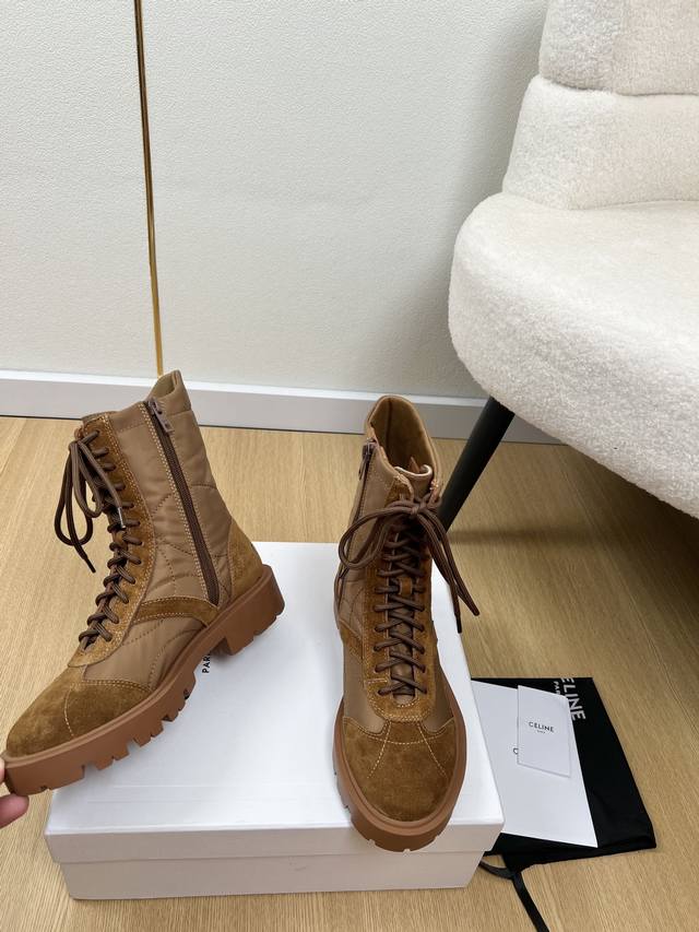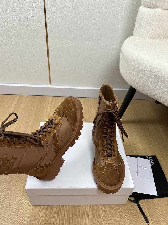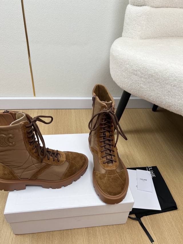 / Celine*赛琳 2025 2025秋冬新品 专柜最新款绑带短靴马丁靴系列 鞋面 :原版定制牛反绒+特殊尼龙防水布面 内里 :定制牛皮里+透气网 大底 :原版