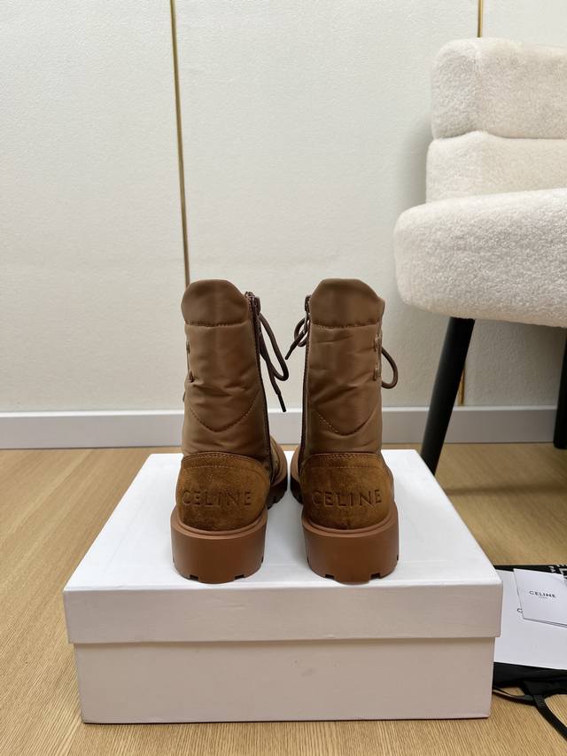 Celine*赛琳 2025 2025秋冬新品 专柜最新款绑带短靴马丁靴系列 鞋面 :原版定制牛反绒+特殊尼龙防水布面 内里 :定制牛皮里+透气网 大底 :原版