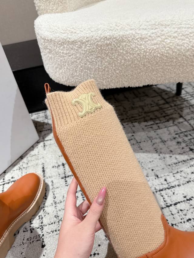 Celine赛琳 25 秋冬 Unlverslte 骑士 长靴 这个高度的靴子非常时髦的,非常好穿显腿长! 鞋底厚度够,增高效果不错哦! 甄选进口小牛皮材质 ,凯旋门Logo压印点缀 质感拉满上脚超帅气哦 面料:定制粒面平纹小牛皮 非市场普通牛皮 内里:羊皮内里 鞋底:真皮沿条组合大底 Size:35-41 40.41订做不退换