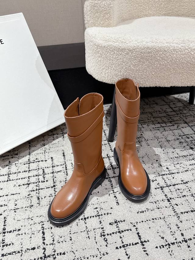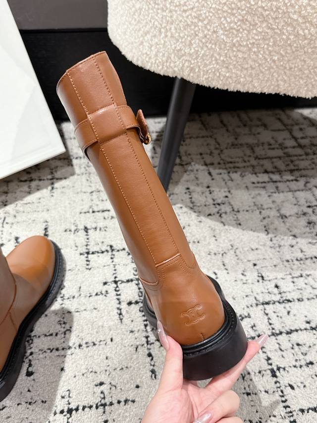 高靴小牛皮面 出 Celine专柜最新时装靴、走秀款时尚博主同款 力推单品!复古欧美风格 炸街必备单品 凯旋门Logo点缀...