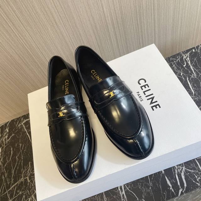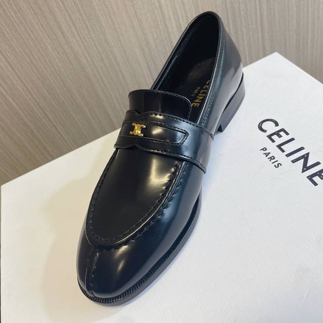 Celine 凯旋门乐福鞋,小皮鞋 乐福鞋复古百搭经典系列,一脚蹬简约设计、简约时尚、真的好好看 鞋面开边珠牛皮面,内里垫脚全真皮,意大利真皮底~~~ 35-3