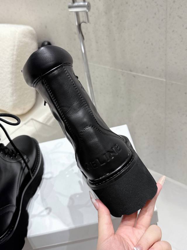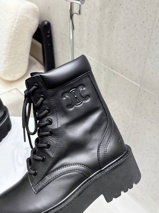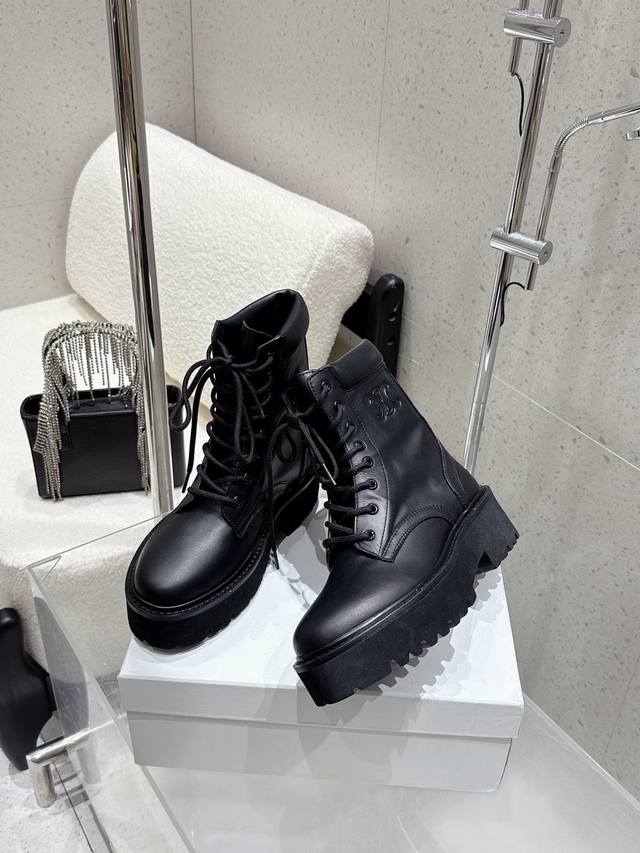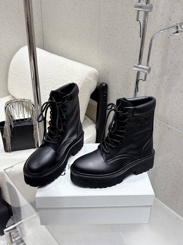 Celine 塞琳.真皮厚底马丁靴 系带短靴|经典与质感的双重奏 黑色款全皮质感拉满,Triomphe压纹尽显辨识度,厚底酷飒又显高;焦糖棕款撞色设计复古吸睛,