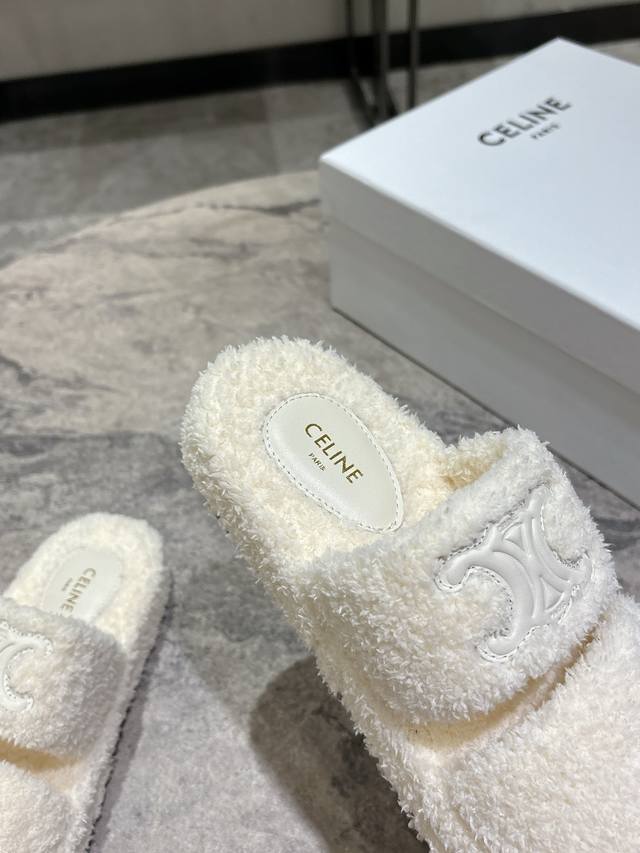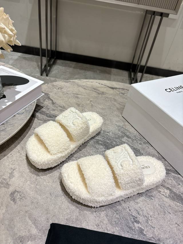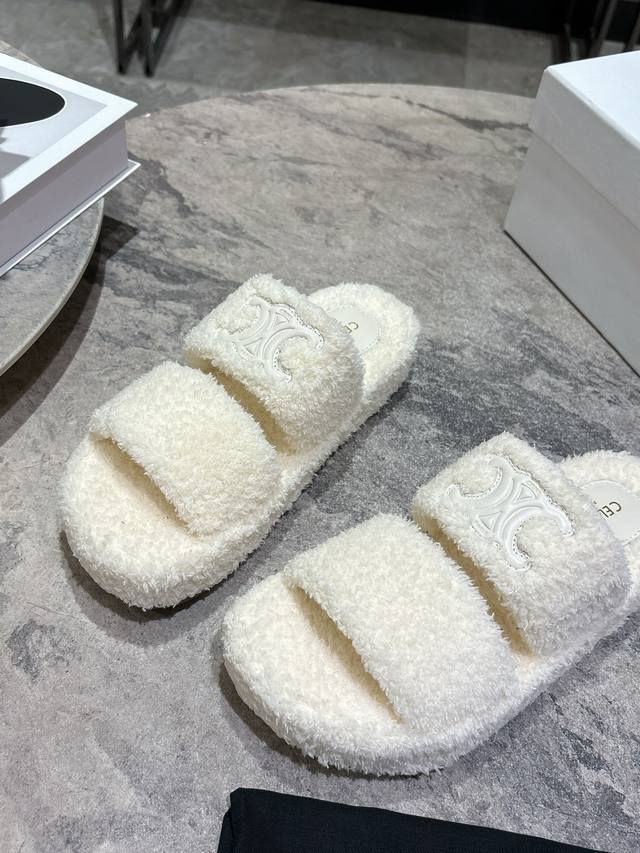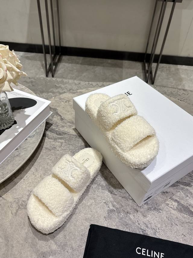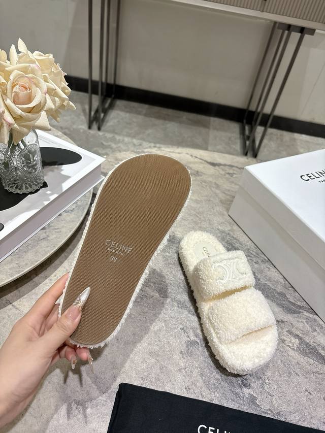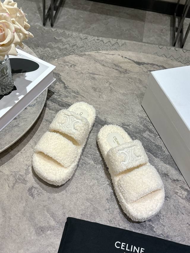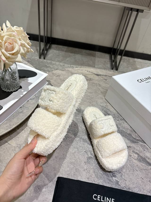 Celine 塞琳 2025Ss新款居家保暖凯旋门羊毛拖鞋 这一季的赛琳又让我重新爱了它一次!这季节美鞋太多这款毛拖真的是让我无法自拔真太可爱了~ 毛茸茸的羊毛