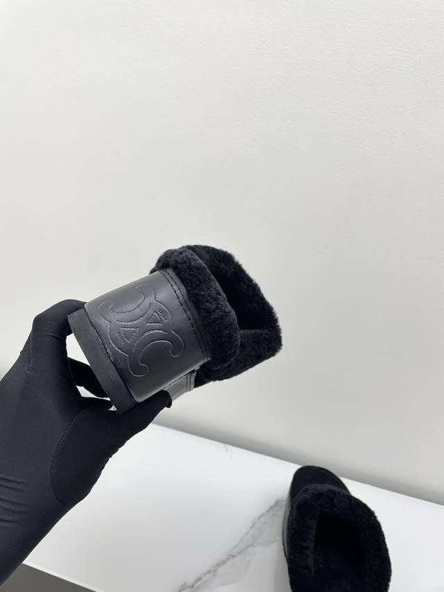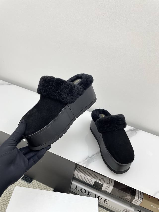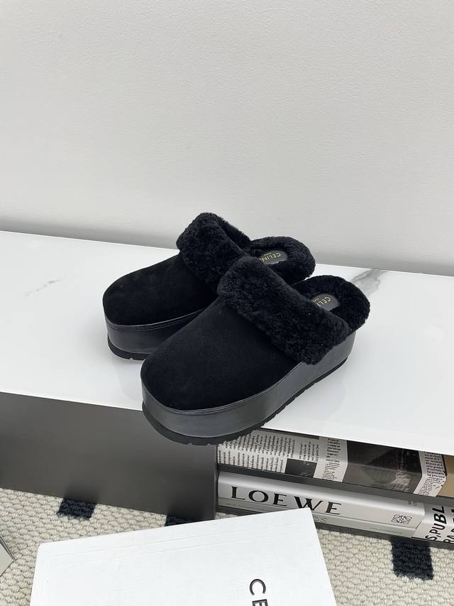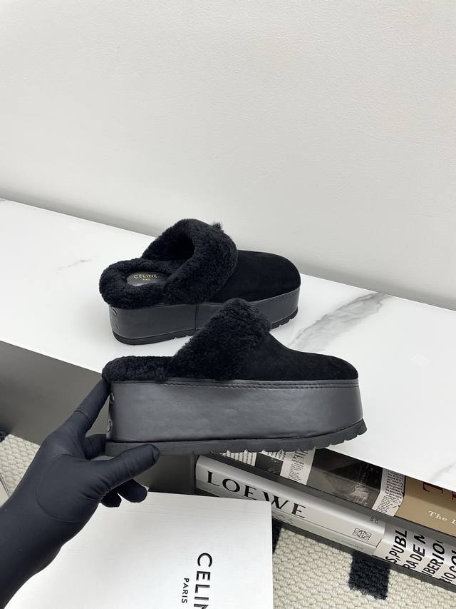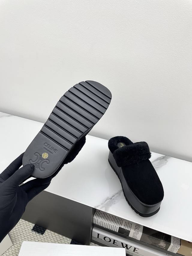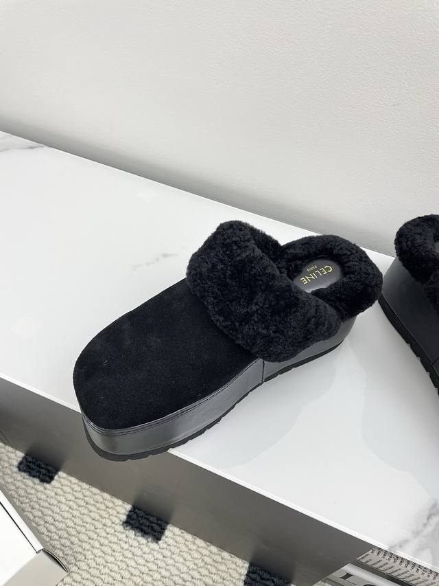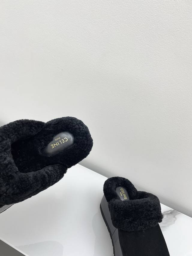 Celine 塞琳25Wf秋冬新品厚底毛毛半拖毛拖