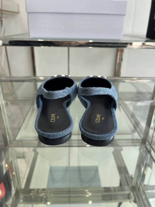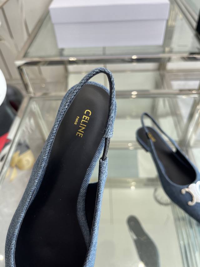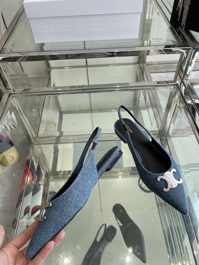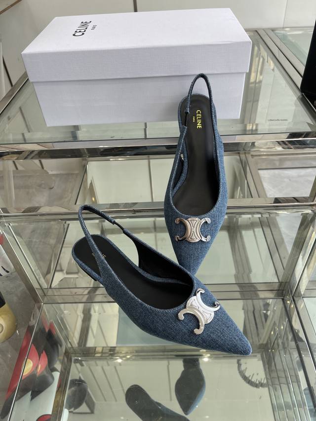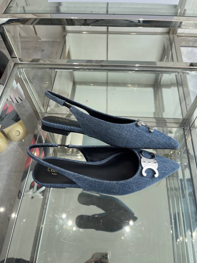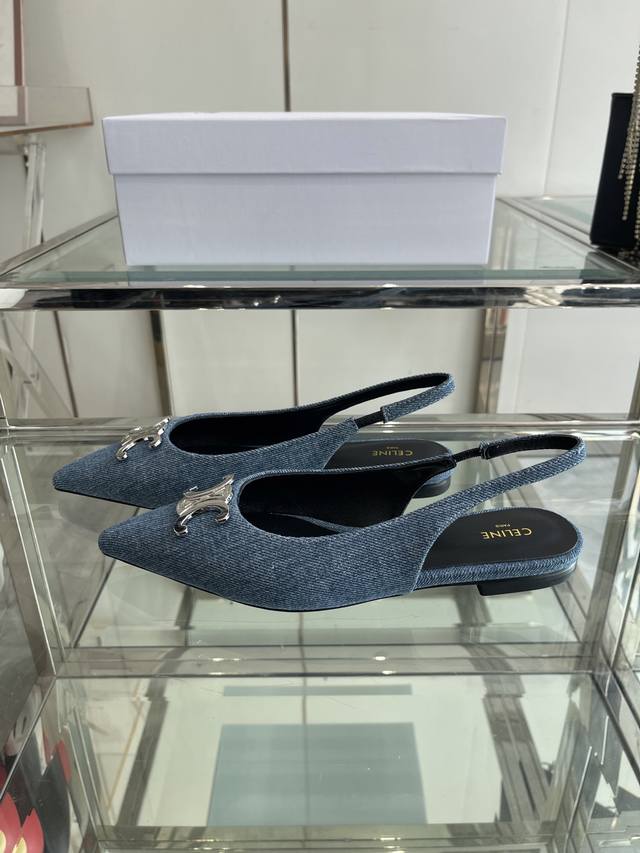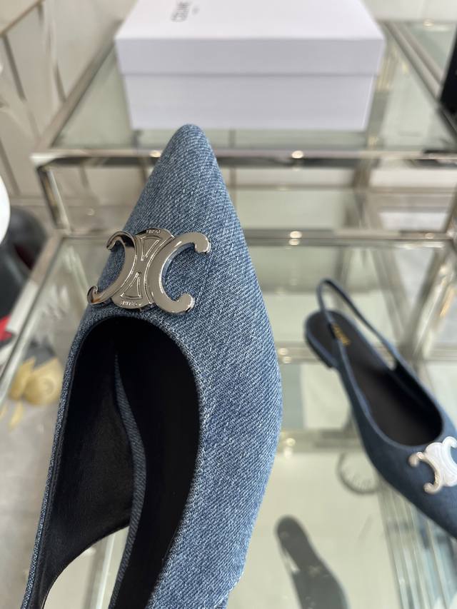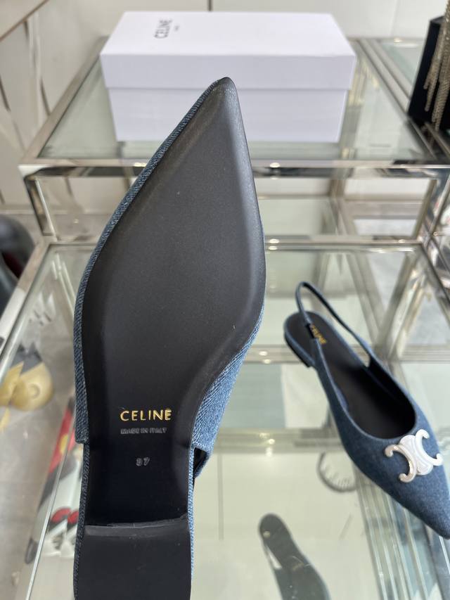 Celine 思琳 2025Ss新款凯旋门尖头平底 细跟凉鞋 性感气质尖头 凉鞋干净利落 超显腿细,无论是单穿还是搭配阔腿裤,高街又复古 一起来做Celine女孩 鞋面:进口牛仔布 内里:羊皮内里 大底:原版真皮大底 码数:35-40 40 订做