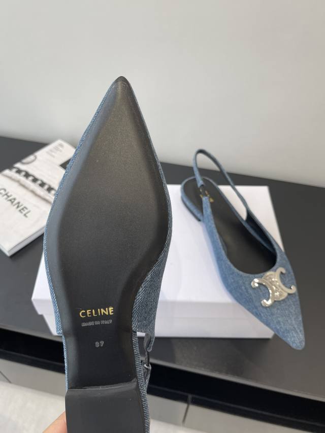 Celine 思琳 25Ss新款凯旋门尖头平底 细跟凉鞋 性感气质尖头 凉鞋干净利落 超显腿细 无论是单穿还是搭配阔腿裤 高街又复古 一起来做Celine女孩