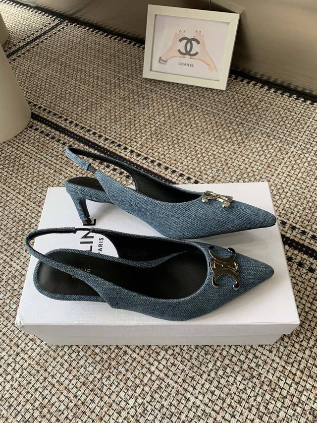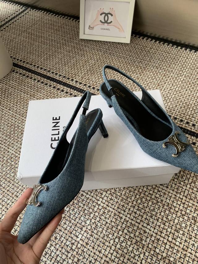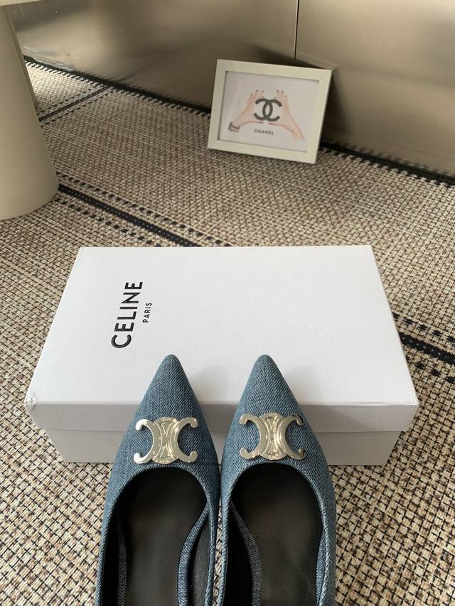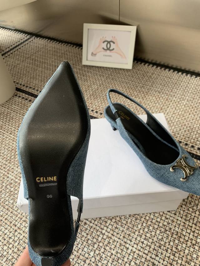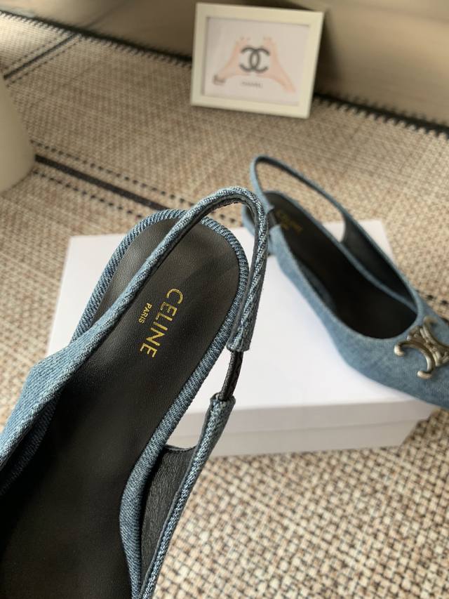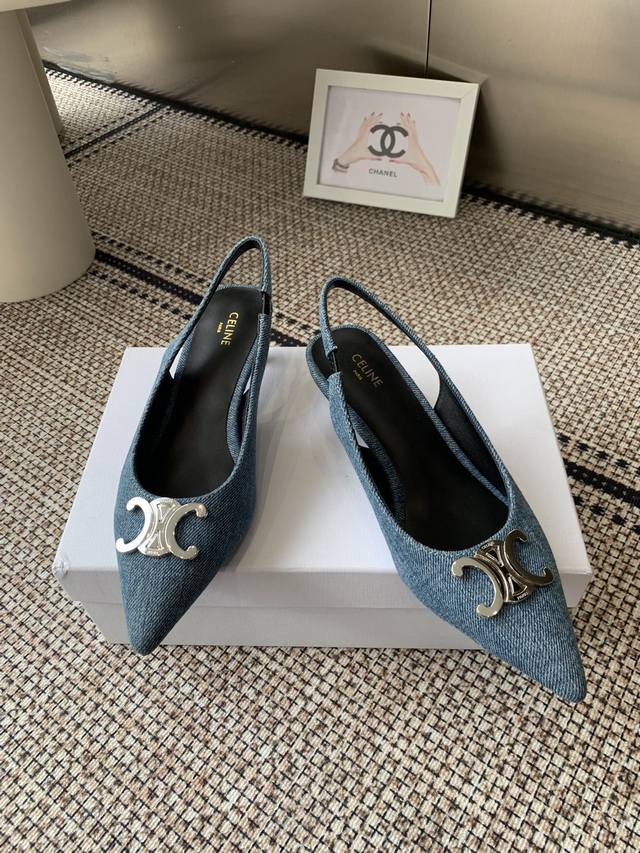 Celine 思琳 25Ss新款凯旋门尖头平底 细跟凉鞋 性感气质尖头 凉鞋干净利落 超显腿细 无论是单穿还是搭配阔腿裤 高街又复古 一起来做Celine女孩 鞋面进口牛仔布 内里羊皮内里 原版真皮大底 码数:35-40 40 订做不退换