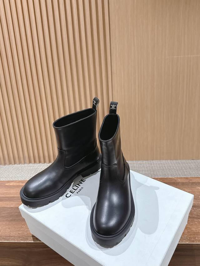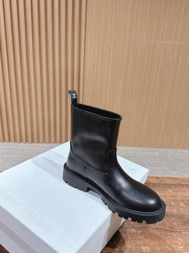/ Celine 思琳2025秋冬款Bumargaret高筒靴系列短靴系列拼色一脚蹬交叉搭扣长靴松紧带帆布短靴配亮泽牛皮马丁靴,圆润造型鞋头,后帮饰Logo丝印,长