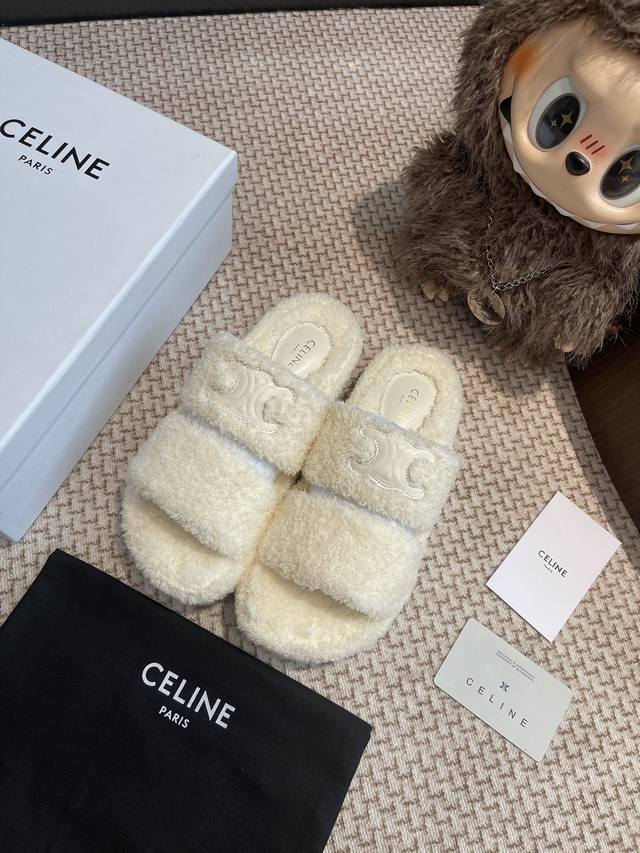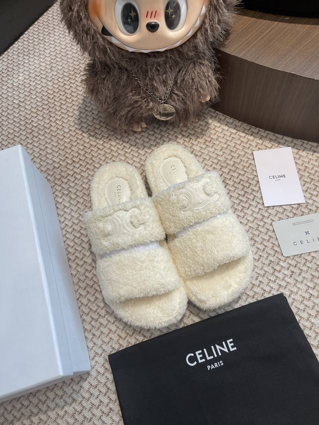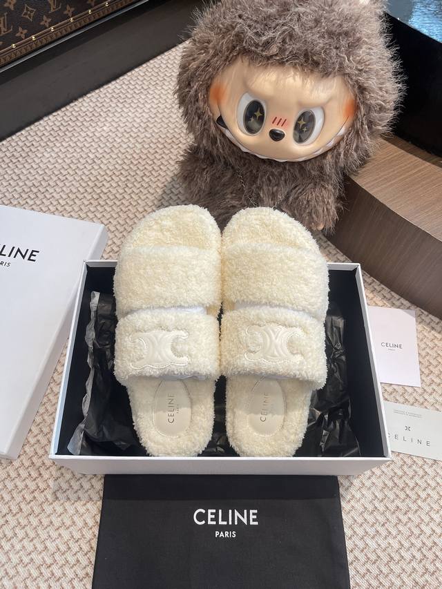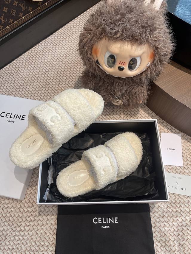 Celine 毛拖鞋 整双鞋子采购Zp开发打造,全部定制材料,独家开模大底,细节全部对版出货,连包装也做到跟正品一样。码数:35-40