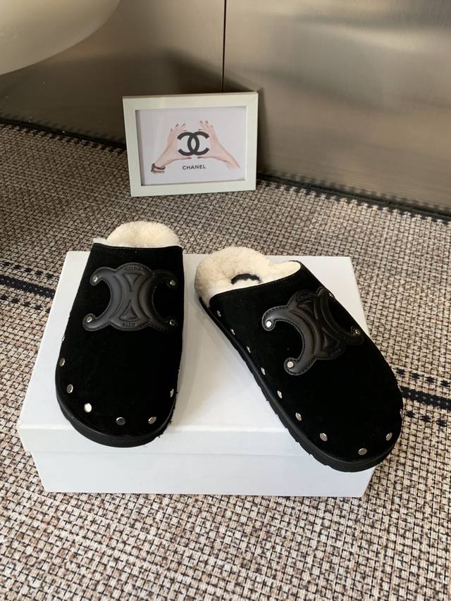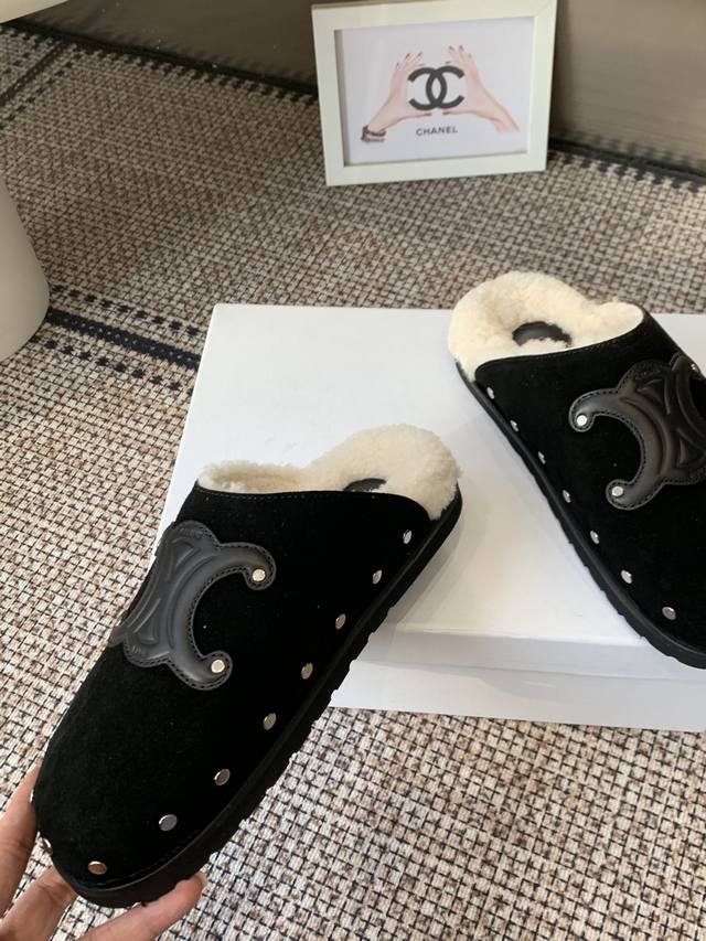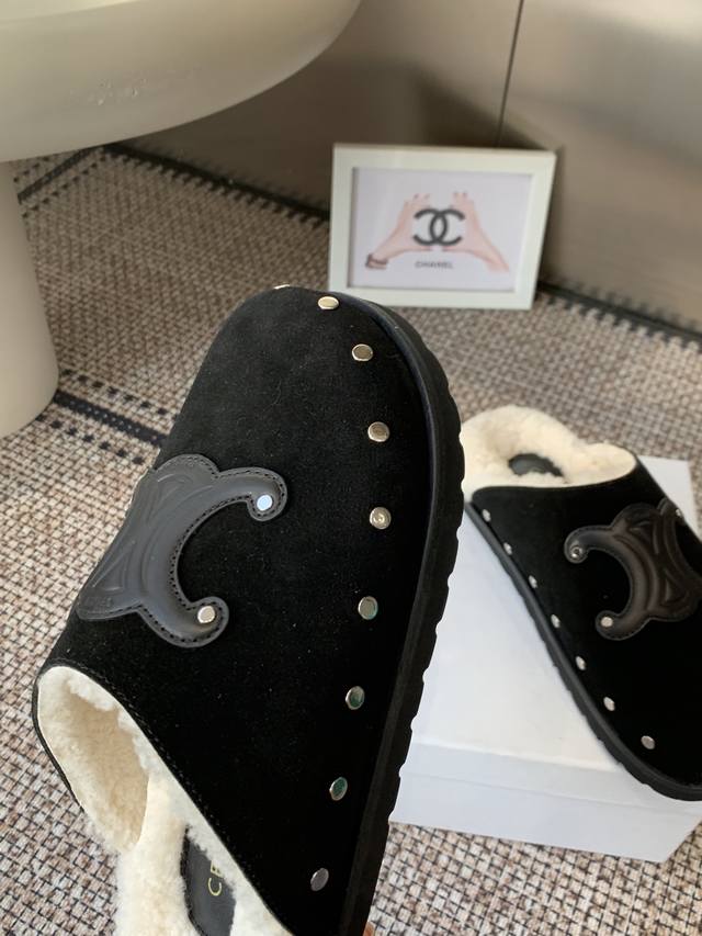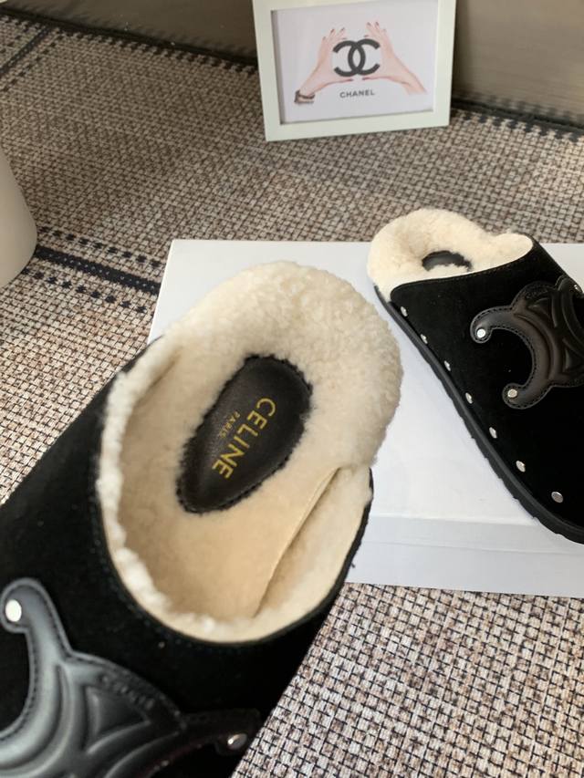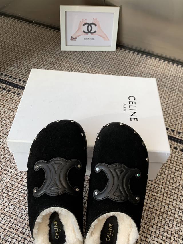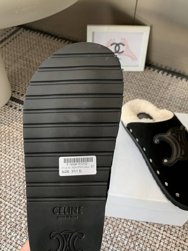 Celine 赛琳 最新款 绒里 勃肯半拖 DDD 高级感十足 网红Ins种草神器、非常复古风、气场十足单品 设计风格非常新颖、高档且非常舒适.压印Celine