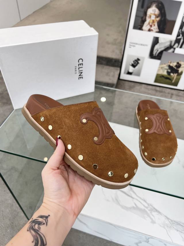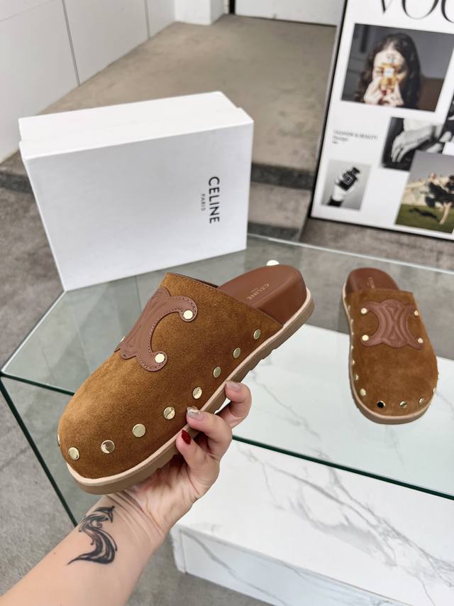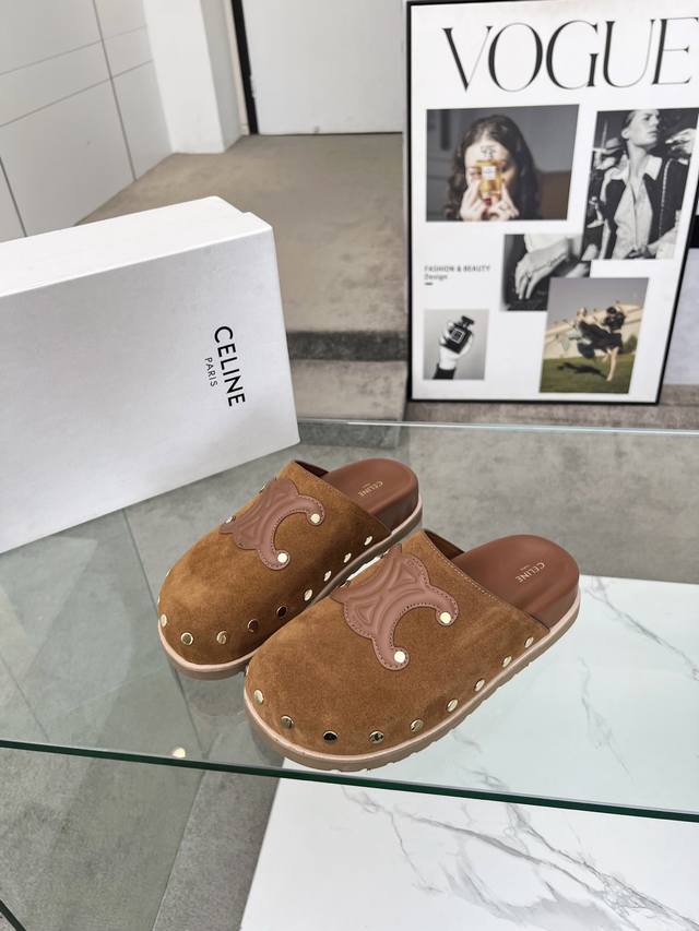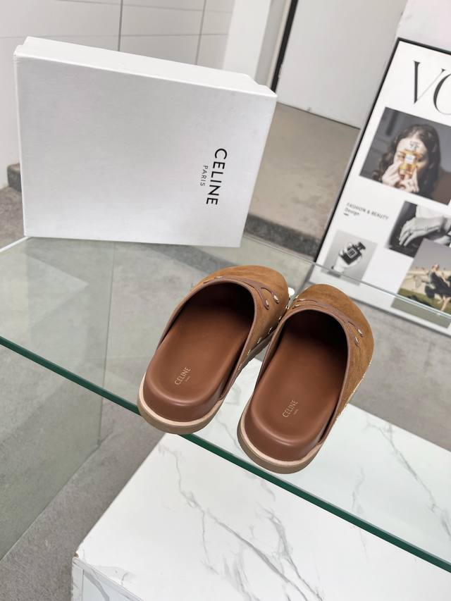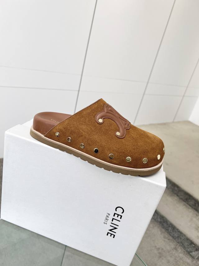 / Celine 赛琳 2025春夏新品半拖鞋鞋面采用小牛皮加经典压花Logo油边工艺,质感非凡上脚超级好看 内里:羊皮,面料:丝光牛绒 码数35-42 41.42