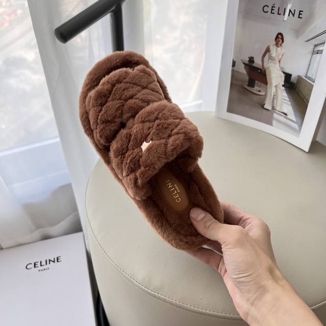 Celine 赛琳 2025顶级专柜 秋冬新款 官网上新 独家首发 Celine 赛琳 凯旋门毛毛拖 赛琳毛拖 凯旋门毛拖 赛琳 Celine 太古里街拍热款