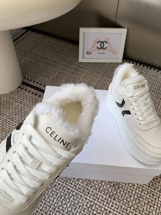 / Celine 赛琳 25Ss新款 厚底羊毛里休闲鞋小白鞋 简单舒服 干净利落 增高显腿细 无论是单穿还是搭配阔腿裤高街又复古 一起来做Celine女孩 鞋面进口
