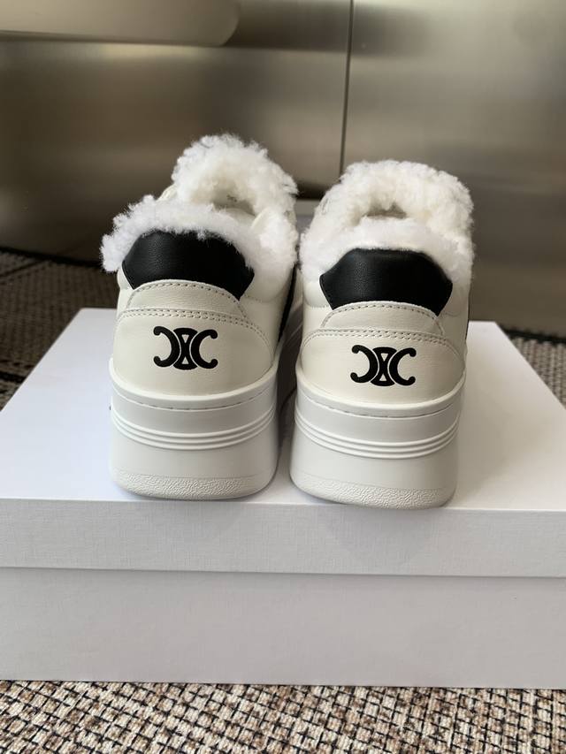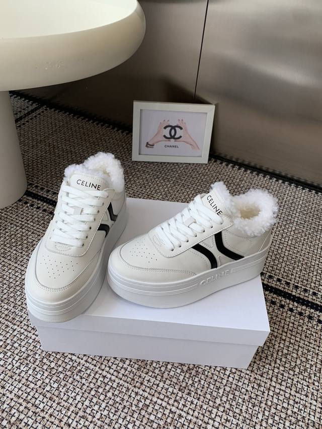 Celine 赛琳 25Ss新款 厚底羊毛里休闲鞋小白鞋 DDD 简单舒服 干净利落 增高显腿细 无论是单穿还是搭配阔腿裤高街又复古 一起来做Celine女孩 DDD 鞋面进口头层小牛皮 DDD 内里进口羊毛 DDD 原版1:1开模大底 DDD 码数:35-40 40定做 DDD