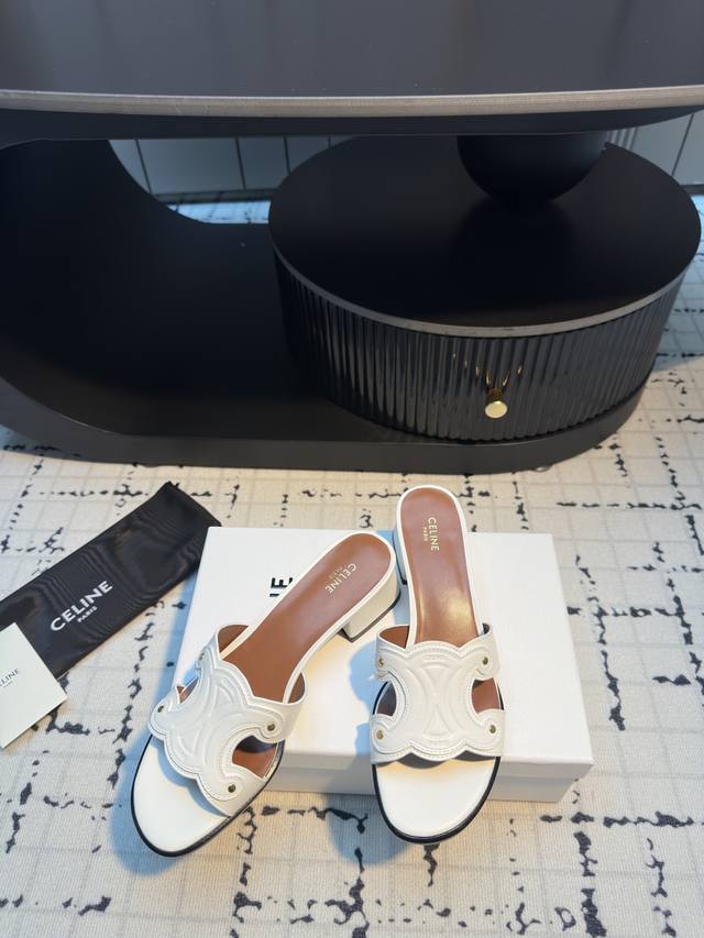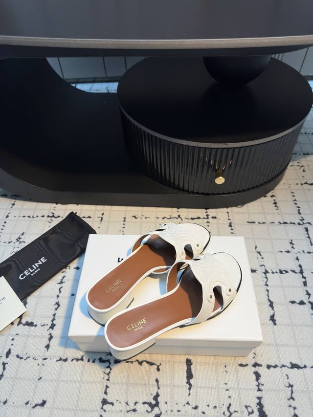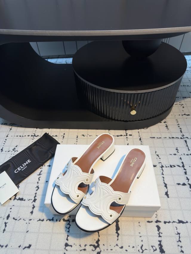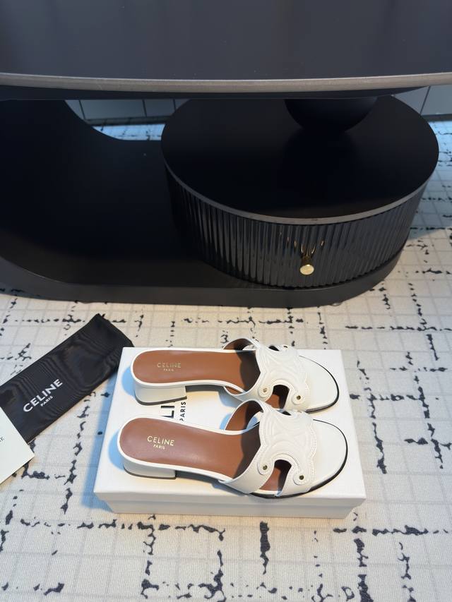 Celine 2025夏季新款凯旋门平底一字拖满满的法式浪漫风情话说H拖遍地都是夏天但凯旋门能让你与众不同鞋型整体就很轻便自重很轻春姑娘开始躁动~随意搭配小裙子或牛仔裤都很时髦!码数:35 41 40.41定做不退不换