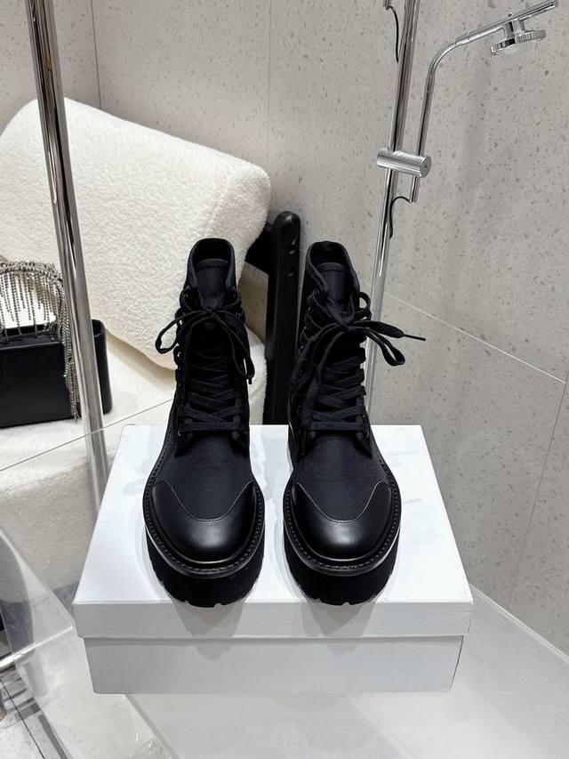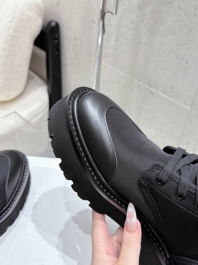 Celine2025年冬季新款 厚底帆布马丁靴|酷飒与质感的双向奔赴 DDD 黑色款是暗黑系的心头好,帆布与皮革拼接,厚底自带气场,标志性Triomphe标识彰显辨识度;卡其色款则多了份复古随性,秋冬搭配大衣、工装裤都很绝,每一步都踩在时尚审美点上,是鞋柜里值得收藏的风格利器~ 底厚:4.5Cm DDD 正码:35-42 DDD