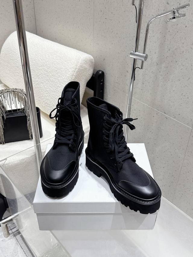 / Celine2025年冬季新款 厚底帆布马丁靴|酷飒与质感的双向奔赴 黑色款是暗黑系的心头好,帆布与皮革拼接,厚底自带气场,标志性Triomphe标识彰显辨识度