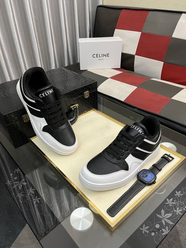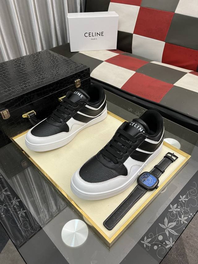 / 出厂价pp: Celine赛琳 低邦牛皮革系带运动鞋;时尚轻松又高级,无论是通勤还是出游统统都Hold住!明星同款 时尚百搭舒适度极佳原板刻复!面料牛皮,内里透