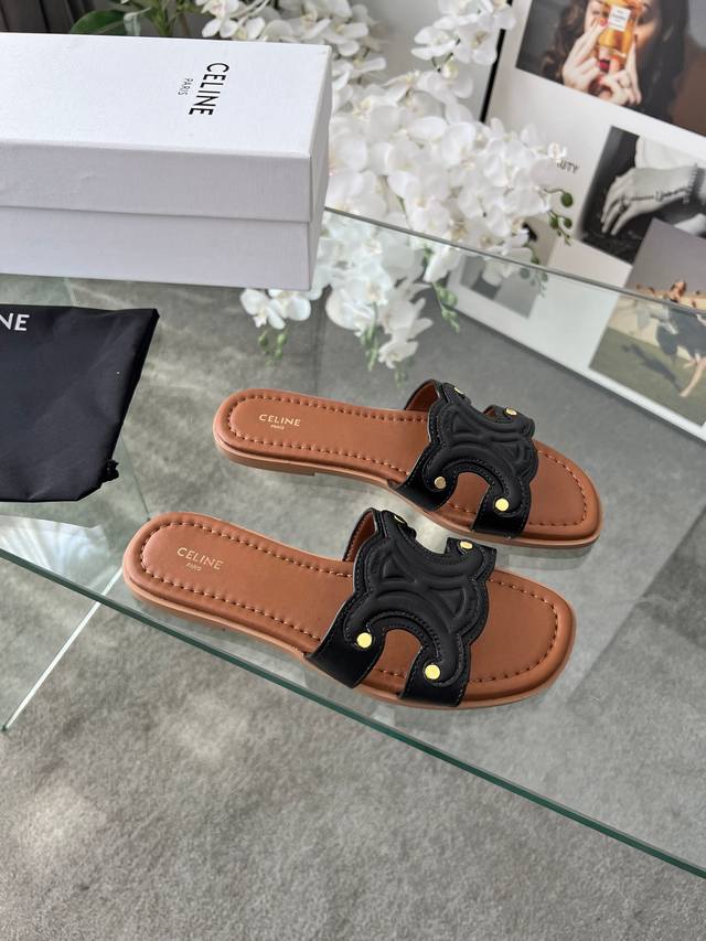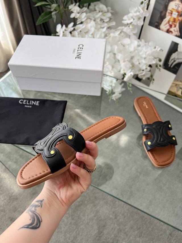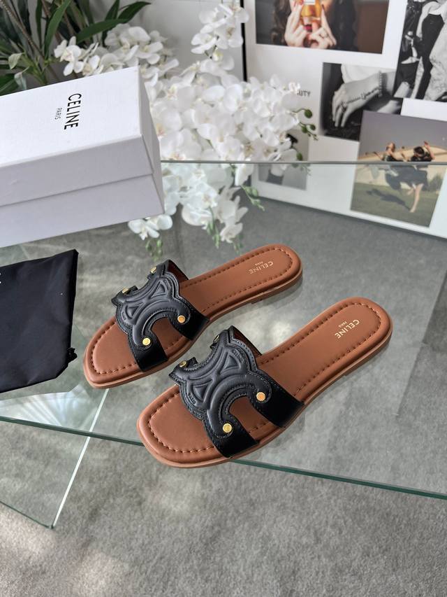 / 实价 真皮底+40 225 赛琳 Cel*E 夏新款爆款凯旋门英伦风平底凉鞋拖鞋 简约大气时髦,耐看不过时,是时尚圈永不退潮的经典所在,复古的英伦风格,气质非凡
