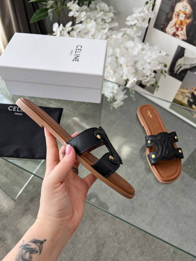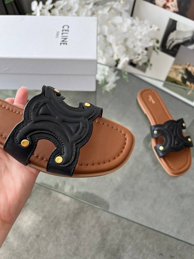 实价 真皮底+40 225 赛琳 Cel*E 夏新款爆款凯旋门英伦风平底凉鞋拖鞋 简约大气时髦,耐看不过时,是时尚圈永不退潮的经典所在,复古的英伦风格,气质非凡