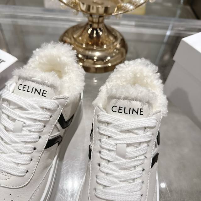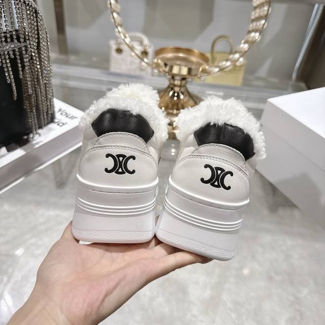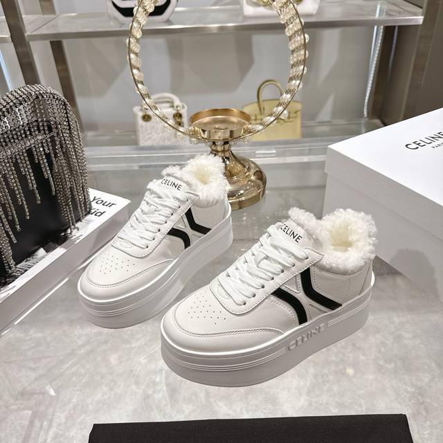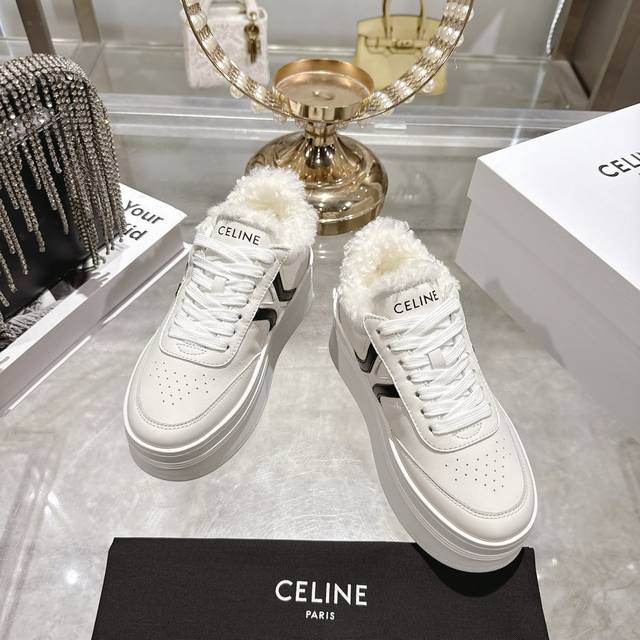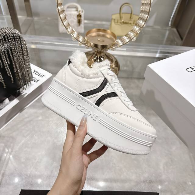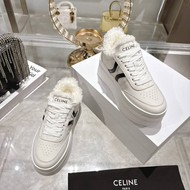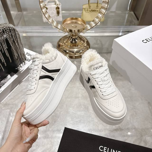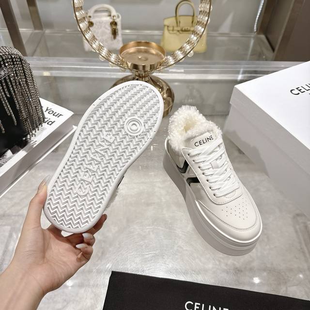 / 工厂p价 女装女鞋 运动原单 高版本 Celine*思琳赛琳 2025Ss新款徽标系带厚底羊毛里休闲鞋小白鞋 简单舒服,干净利落,增高显腿细,无论是单穿还是搭配