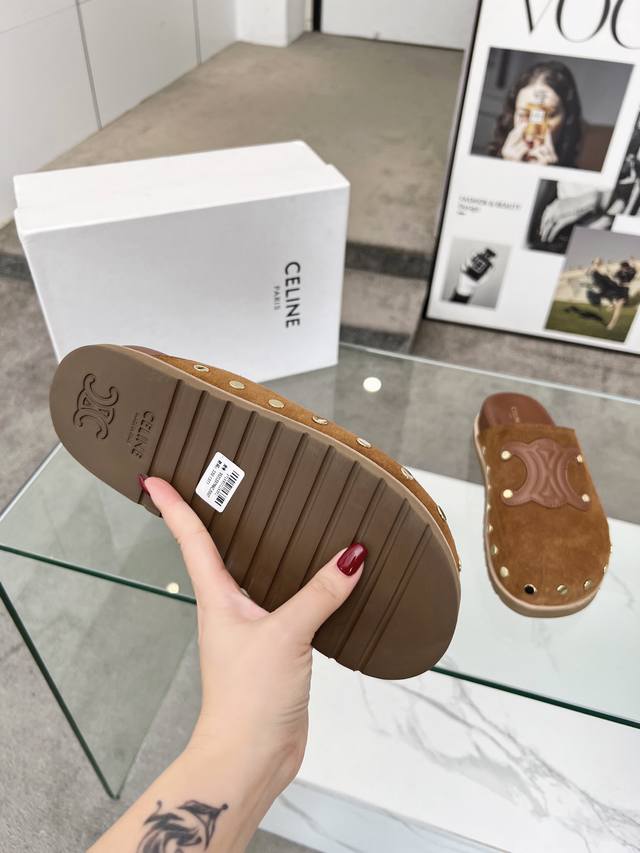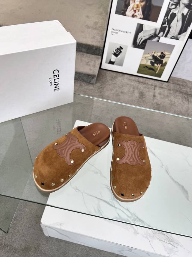 工厂p价 女装女鞋 运动原单 DDD Celine 赛琳 2025春夏新品半拖鞋鞋面采用小牛皮加经典压花Logo油边工艺,质感非凡上脚超级好看 DDD 内里:羊皮,面料:丝光牛绒 DDD 码数35-42 41.42定做不退换 DDD