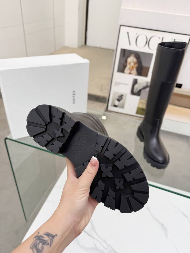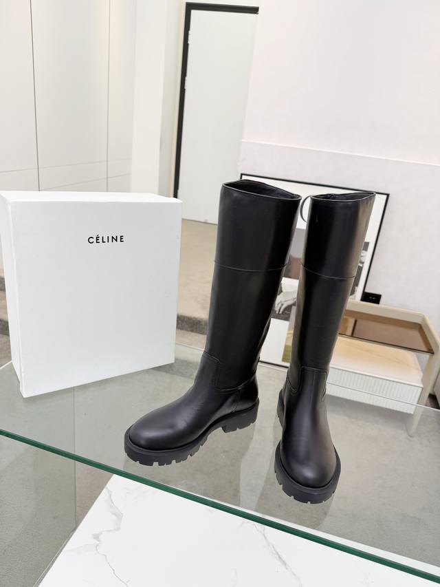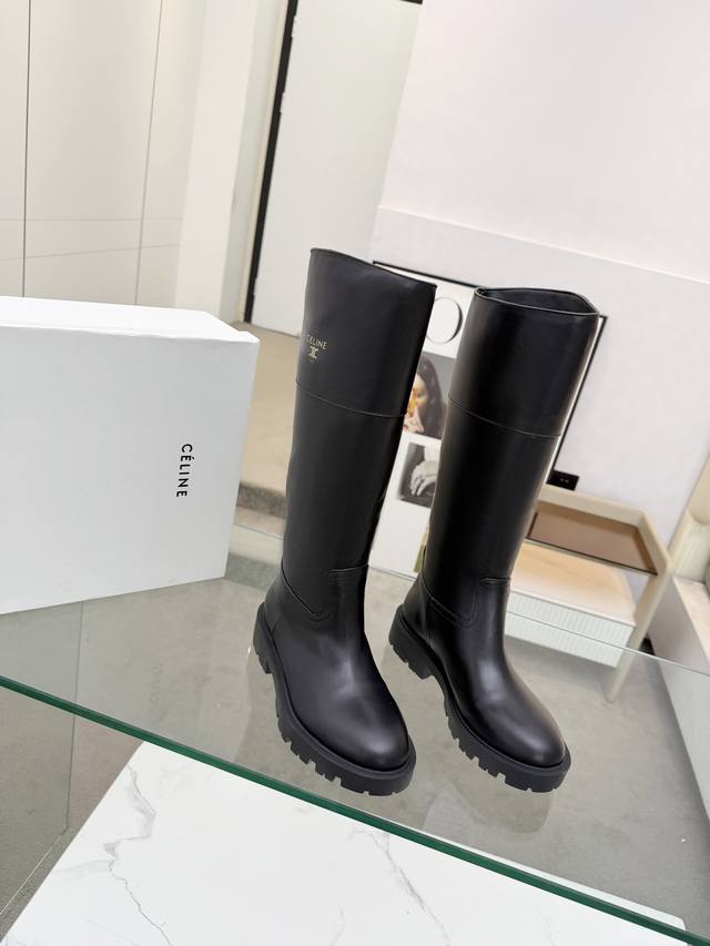 / 工厂p价 女装女鞋 运动原单 Celine 赛琳 2025秋冬新款一脚蹬骑士长靴鞋面采用小牛皮油边工艺一款经典穿搭永不过时 内里:羊皮,面料:头层小牛皮 码数3
