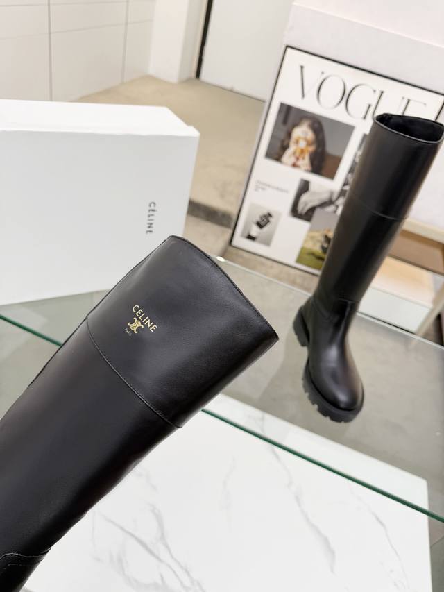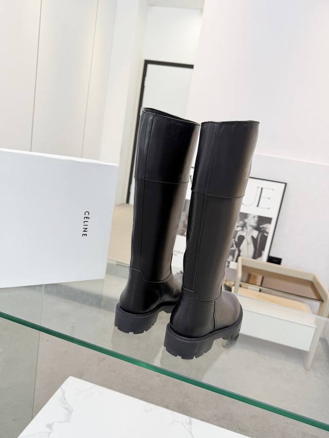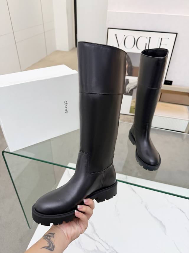 工厂p价 女装女鞋 运动原单 Celine 赛琳 2025秋冬新款一脚蹬骑士长靴鞋面采用小牛皮油边工艺一款经典穿搭永不过时 内里:羊皮,面料:头层小牛皮 码数3