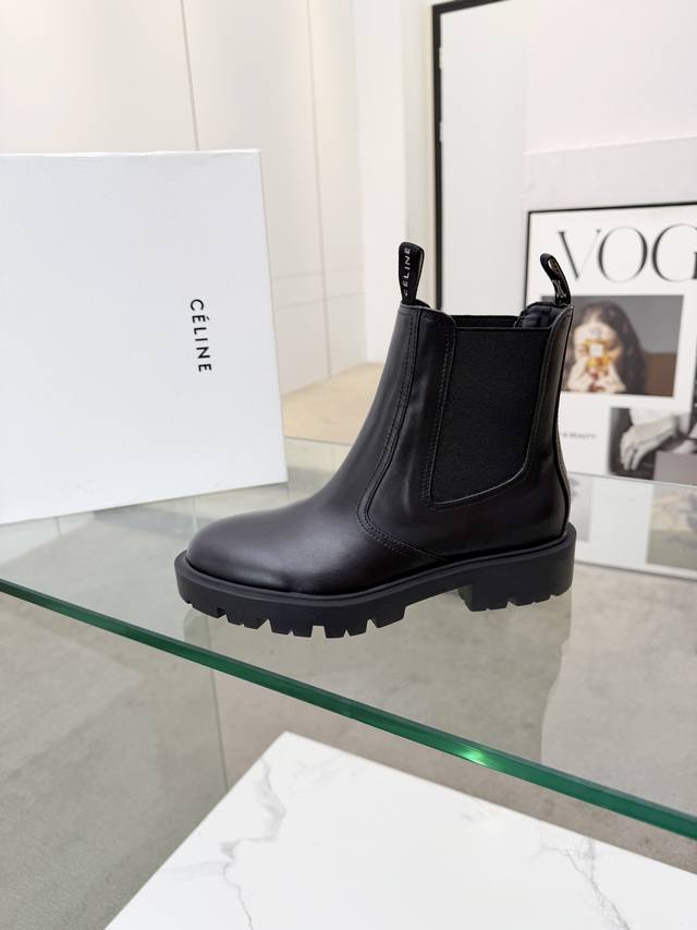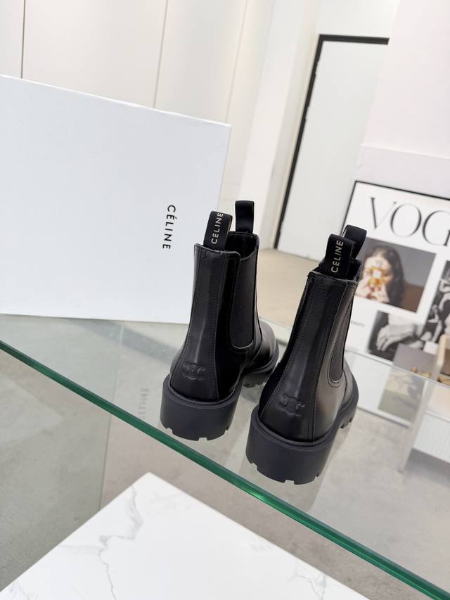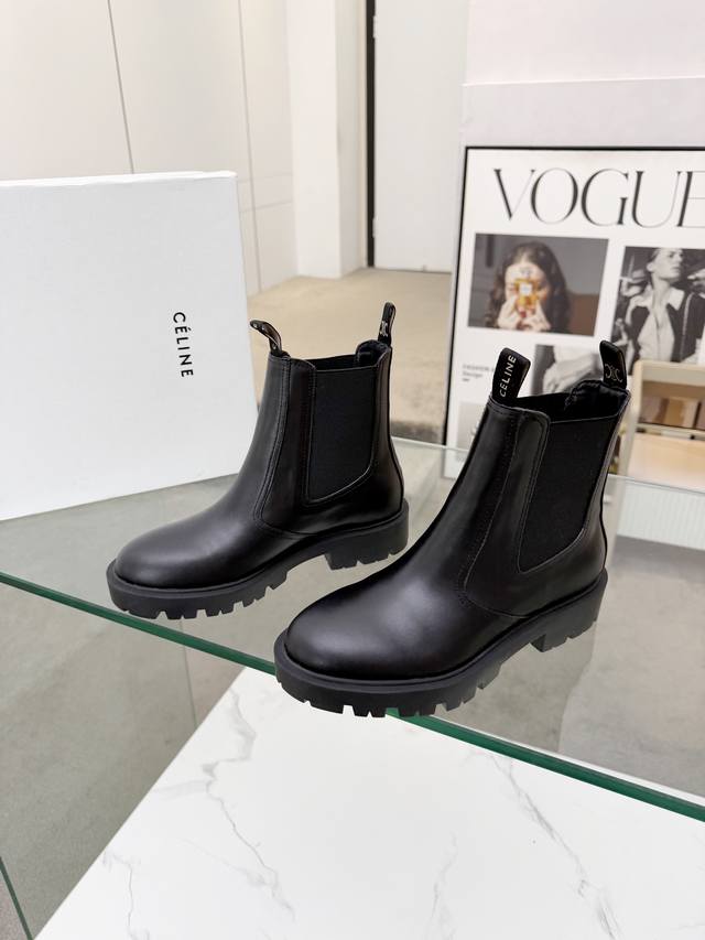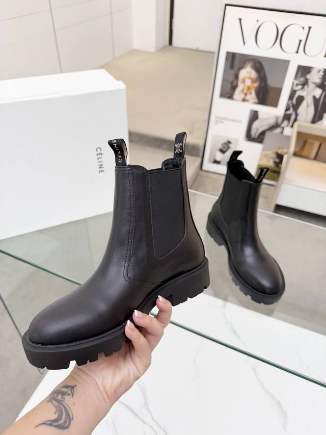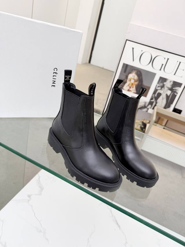 / 工厂p价 女装女鞋 运动原单 Celine 赛琳 2025秋冬新款切尔西短靴鞋面采用小牛皮加经典压花Logo油边工艺一款经典穿搭永不过时 内里:羊皮,面料:头层