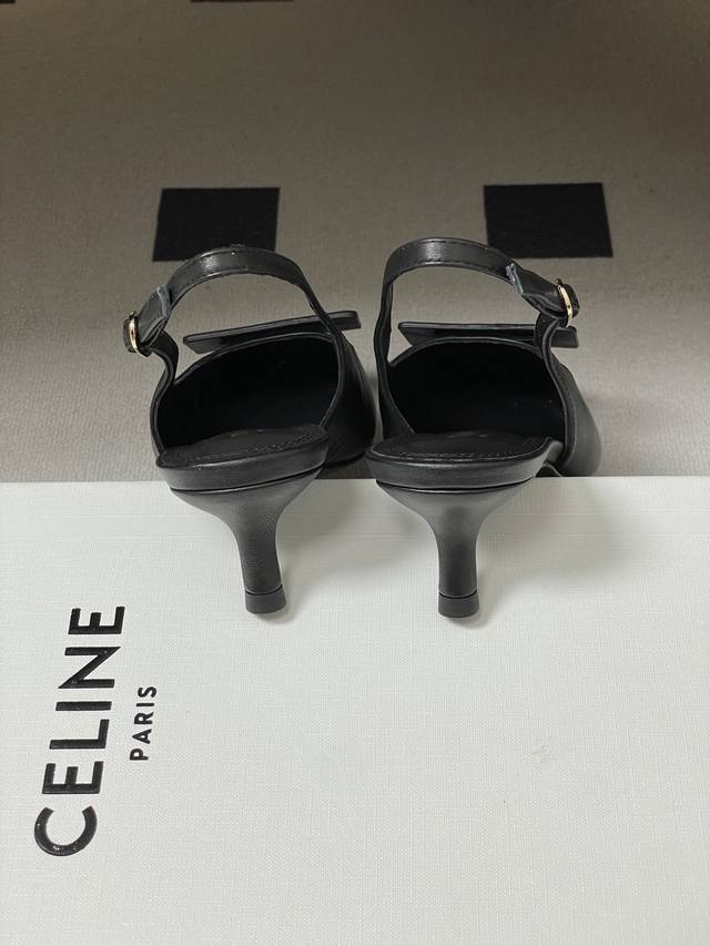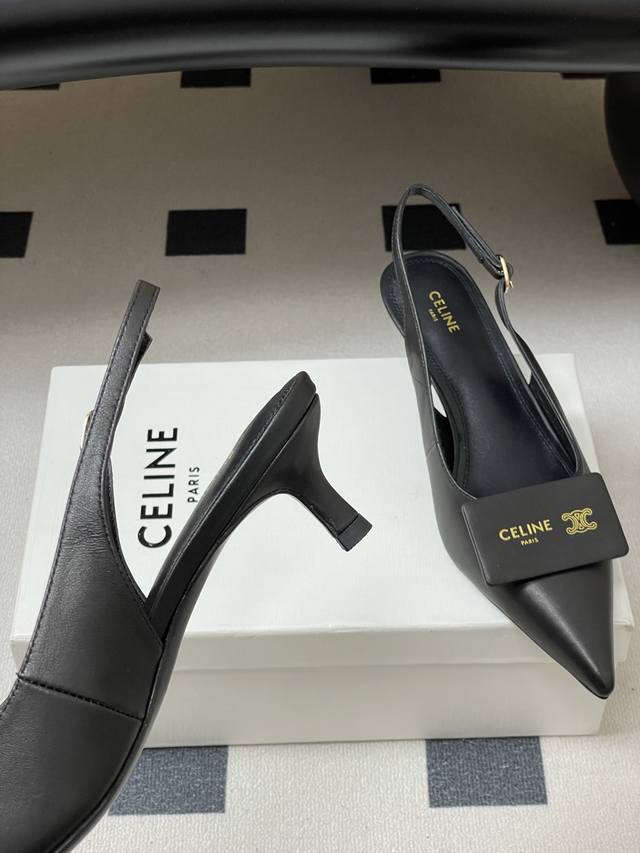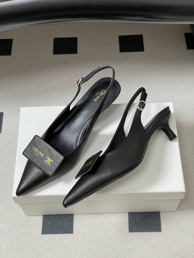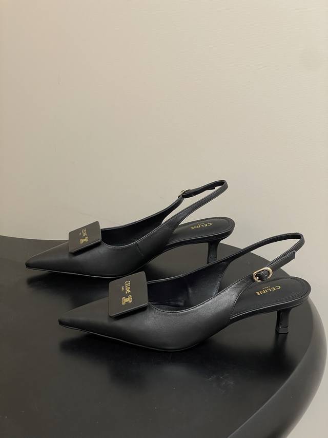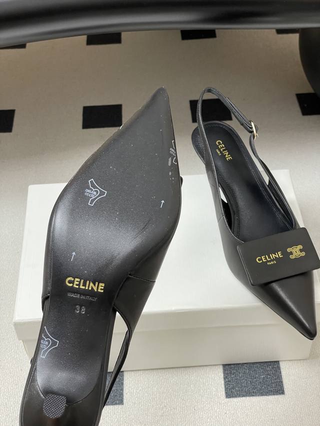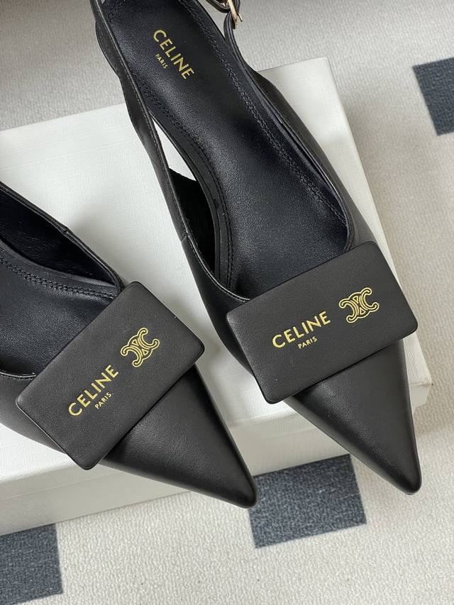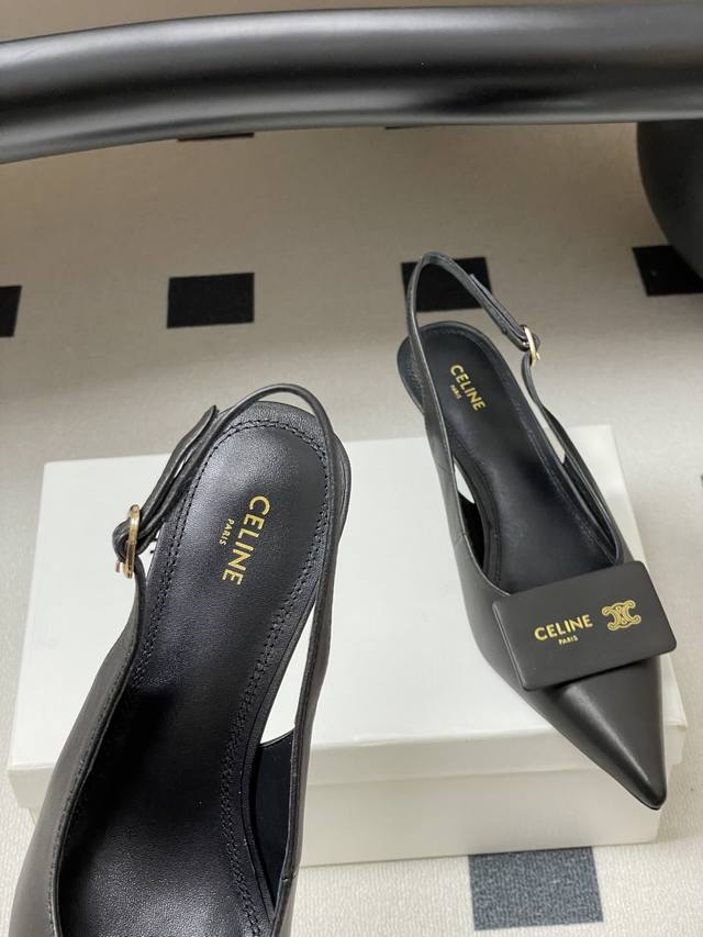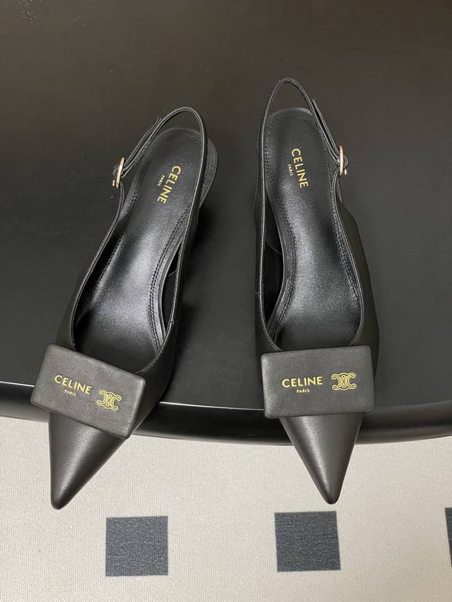 工厂p价 - Ddd 26Fw春夏新款Celine 赛琳 思琳凯旋门小猫跟名片鞋方扣后空凉鞋 Ddd 质感巨高级!鞋头那块“金属铭牌”设计绝了,既有品牌辨识度,又把法式慵懒和干练感揉在一起,后空绑带还特显脚踝细~ Ddd 尖头把脚型衬得巨好看,小猫跟走路也稳,通勤、约会都能穿。配黑西装是“都市女精英”,搭裙子又变“法式氛围美人”,感觉脚踩的不是鞋,是高级感开关啊!每走一步都像在散发“姐很贵但很好搭”的信号,谁能拒绝这种精致感啊~ Ddd 鞋身正面有小巧的Celine金属徽标装饰,低调又凸显品牌辨识度,鞋内