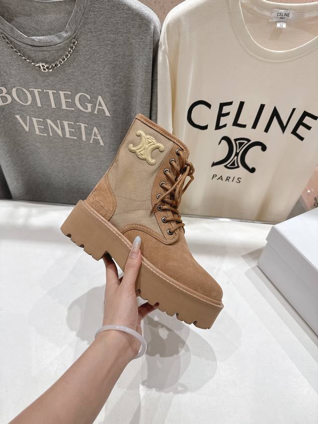 / 高版本出厂 Celine*赛琳F035 2025Ss新款复古系带厚底中短靴马丁靴骑士靴 网红爆款来袭!各大网红抢先体验、Celine网红Ins种草神器、非常复古