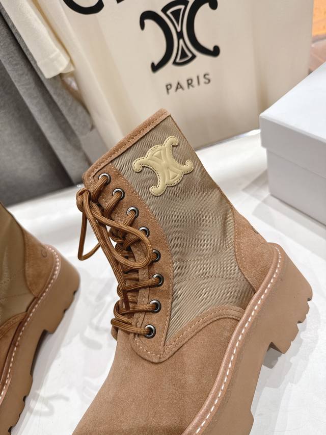 高版本出厂 Celine*赛琳F035 2025Ss新款复古系带厚底中短靴马丁靴骑士靴 网红爆款来袭!各大网红抢先体验、Celine网红Ins种草神器、非常复古