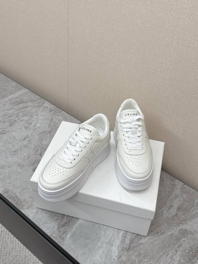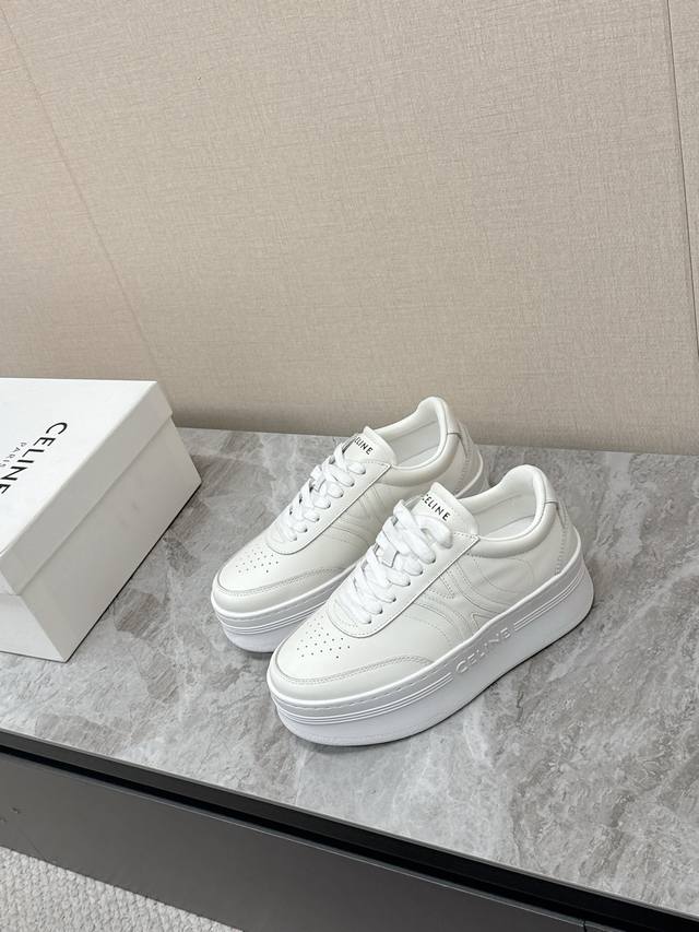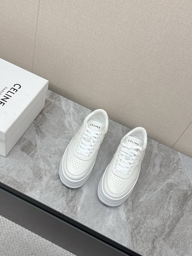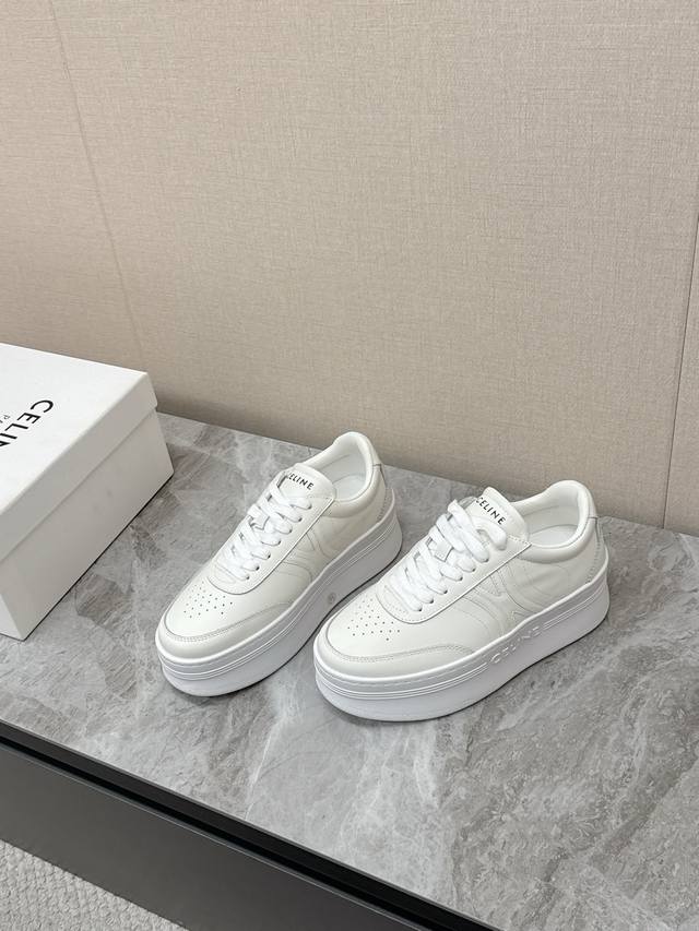 Celine思琳春夏最新款厚底小白鞋 休闲鞋 超多明星网红种草 Lisa同款轻奢风格的小白鞋 简单舒服,干净利落,增高显腿细,无论是单穿还是搭配阔腿裤,高街又复