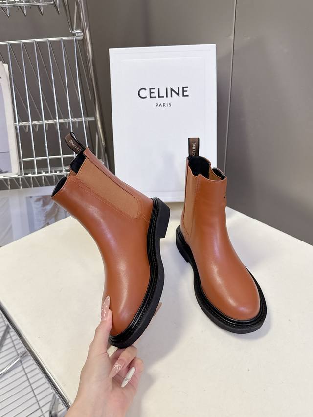 Celine思琳秋冬专柜最新款骑士靴 超多明星网红种草 时尚博主同款 早秋力推单品!复古欧美风格 炸街必备单品 品牌Logo点缀 非常高端有气质 四季可穿的短靴