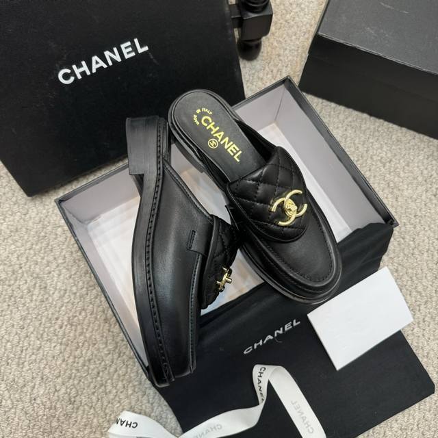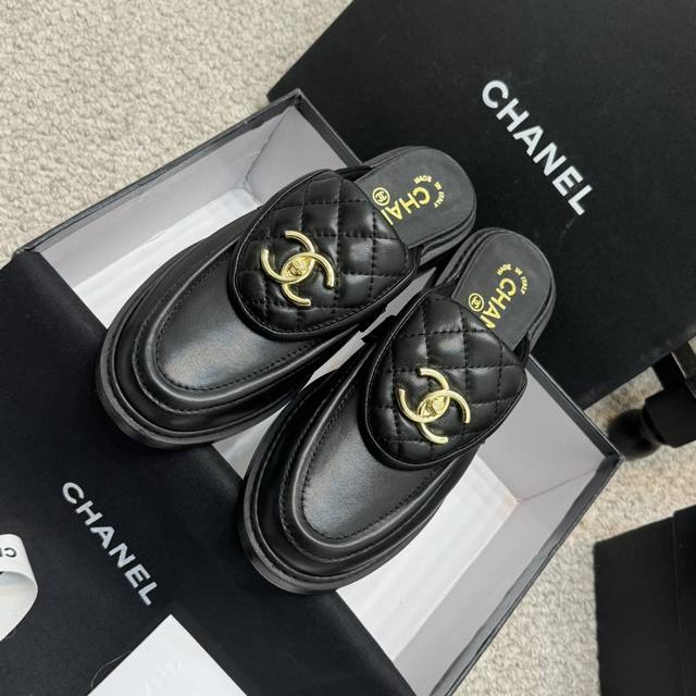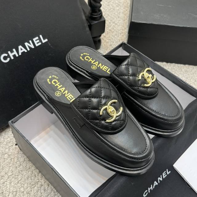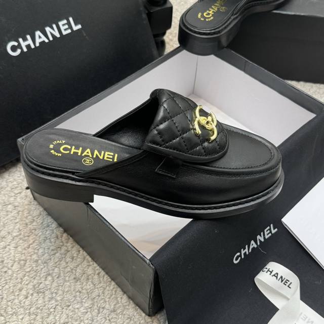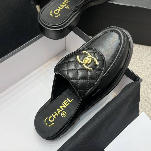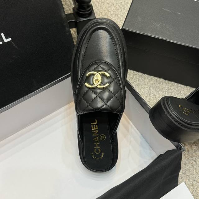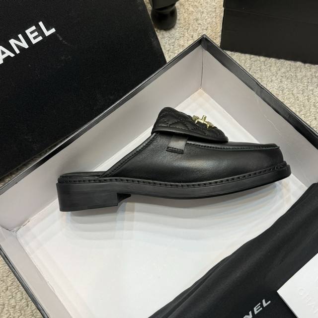 / 专柜同步 Chane*新款翻盖半拖鞋 经典Logo装饰简约大气 精致的高级感 百搭又减龄 各种穿搭都能驾驭. 鞋面进口羊皮内里垫脚羊皮 意大利真皮大底 尺码35