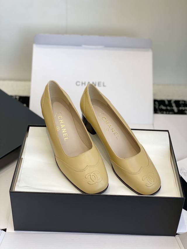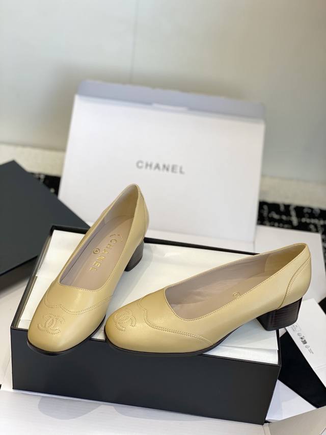 / 东莞代购级 官网同步盒包装 Chanel中古方头粗跟鞋中跟鞋 很静雅,很名媛,没有撞色,没有蝴蝶结等过多的装饰,就轻轻得一个弧度,一个曲线,线条太美太流畅,干净