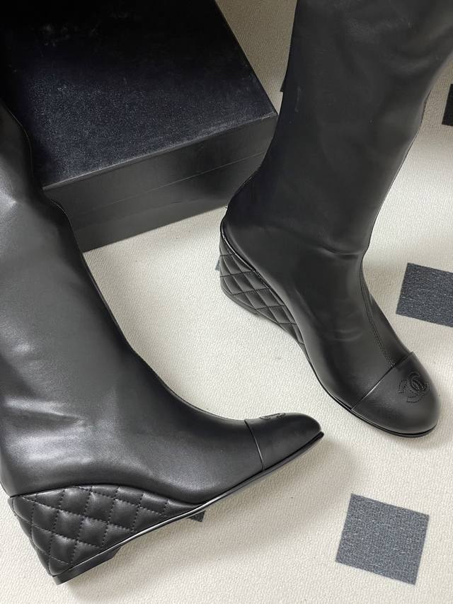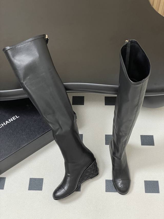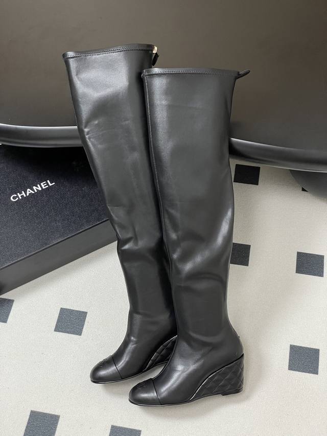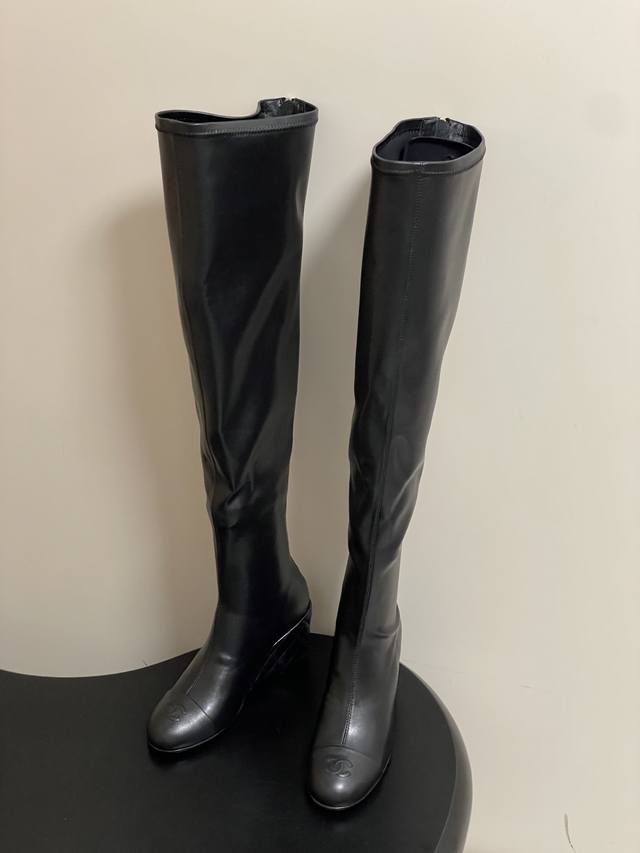 中靴 -长靴 - Chanel 小香25A 秋冬新款双C菱格坡跟弹力靴过膝长靴后拉链长靴 鞋头标志性电绣双C标志低调闪耀,不仅是身份象征 更彰显着独特的时尚态度