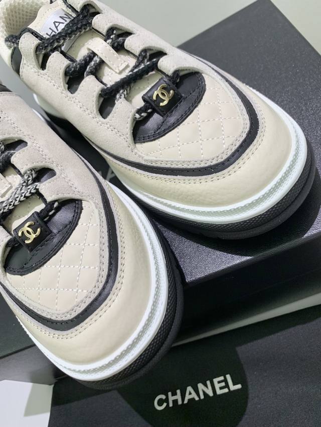 代购级别 Chanel香奶奶25B熊猫鞋绝了 黑白拼色无敌了 增高4Cm左右 也不重 太好看啦建议正码就行了没必要买太大 又是被熊猫鞋拿捏的一季 麂皮棱格纹和黑